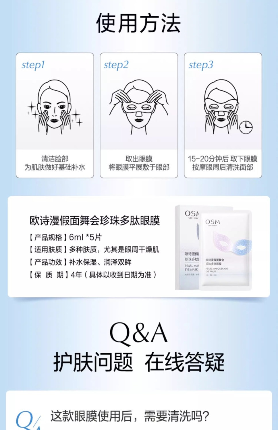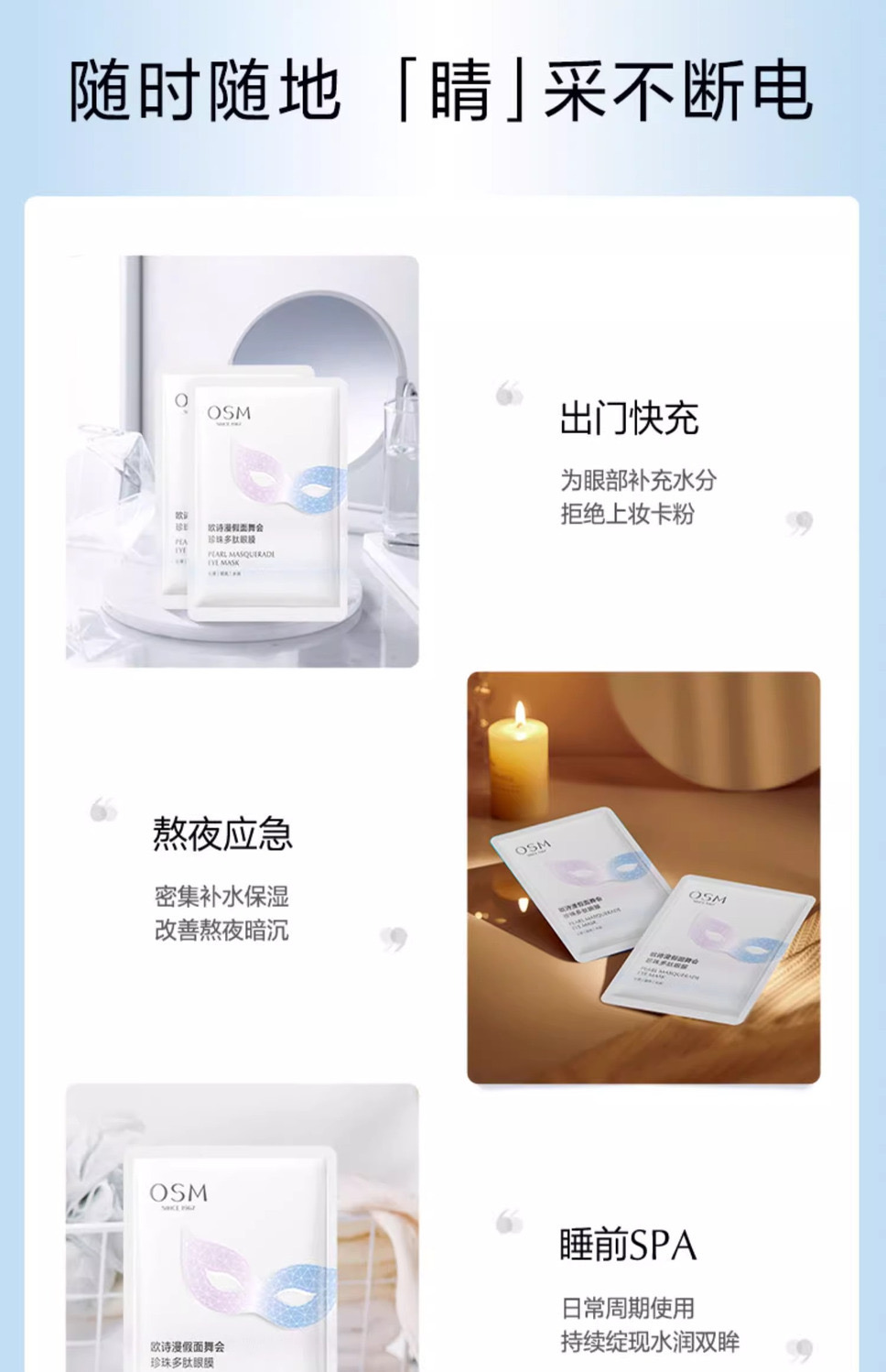 【淡化眼纹黑眼圈】欧诗漫假面舞会眼膜5片*4盒,到手20片眼膜