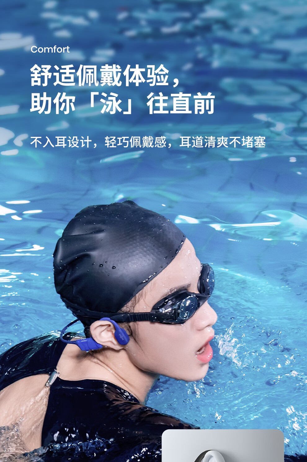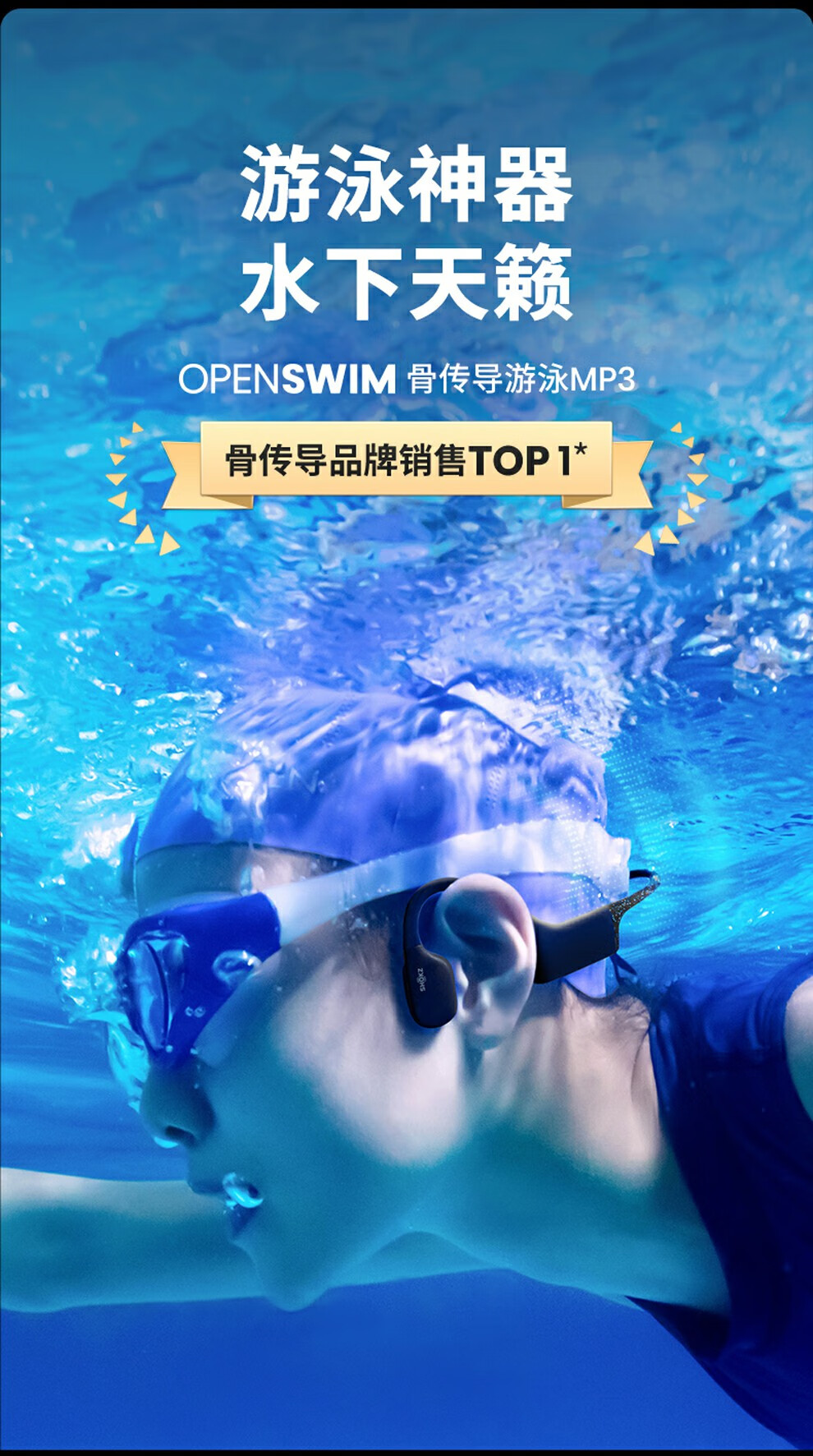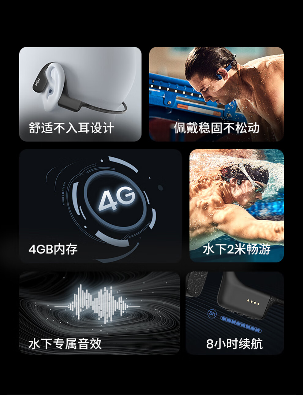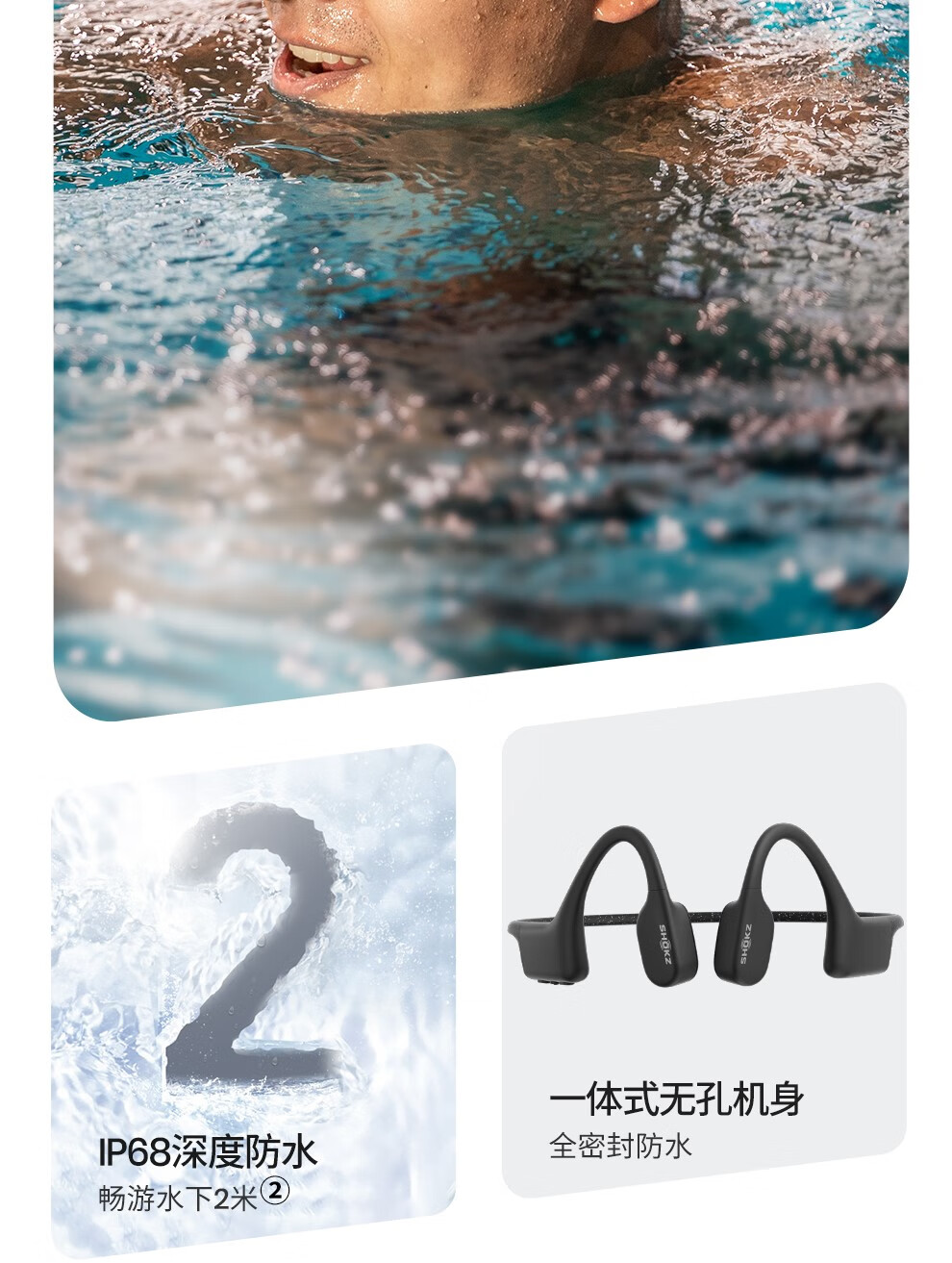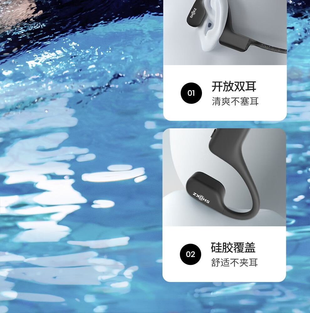 韶音(SHOKZ)OpenSwim骨传导开放式MP3播放器 不入耳式运动游泳跑步专用 IP68防水S700 曜石黑