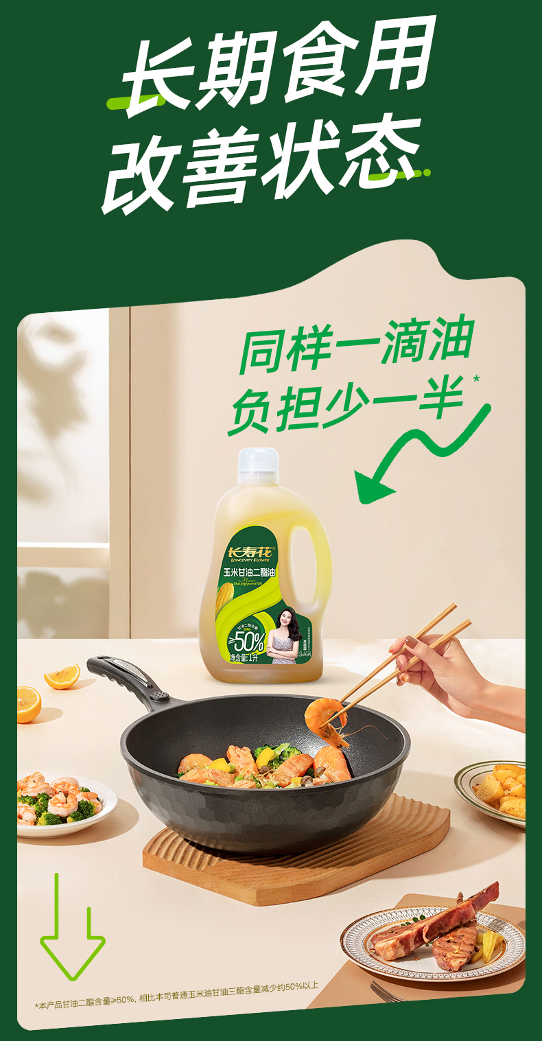 长寿花浓香玉米二酯油甘油二酯含量50%1L