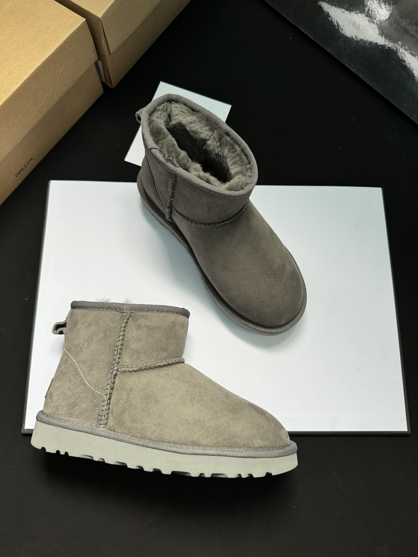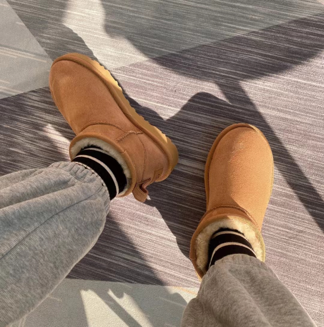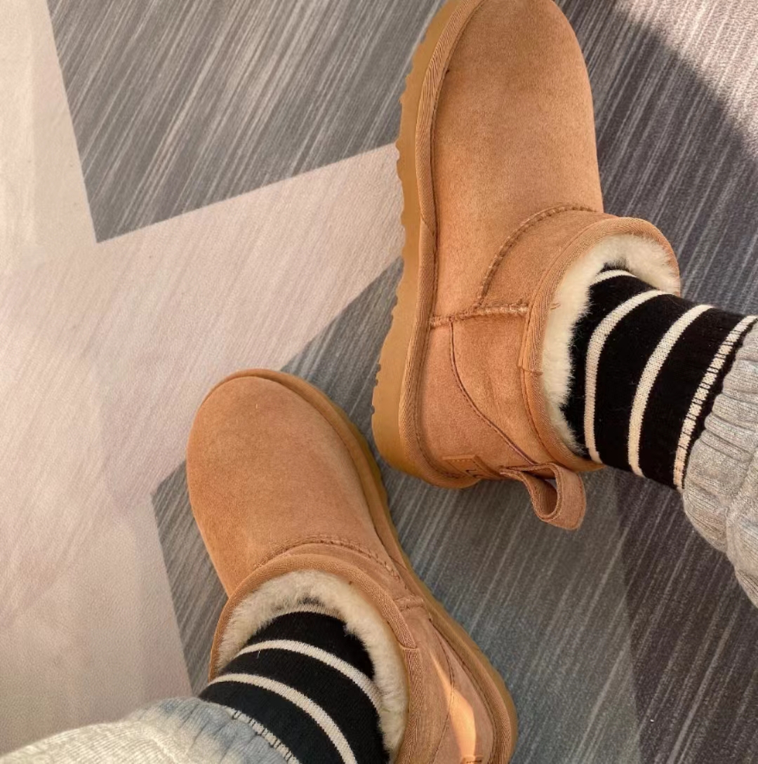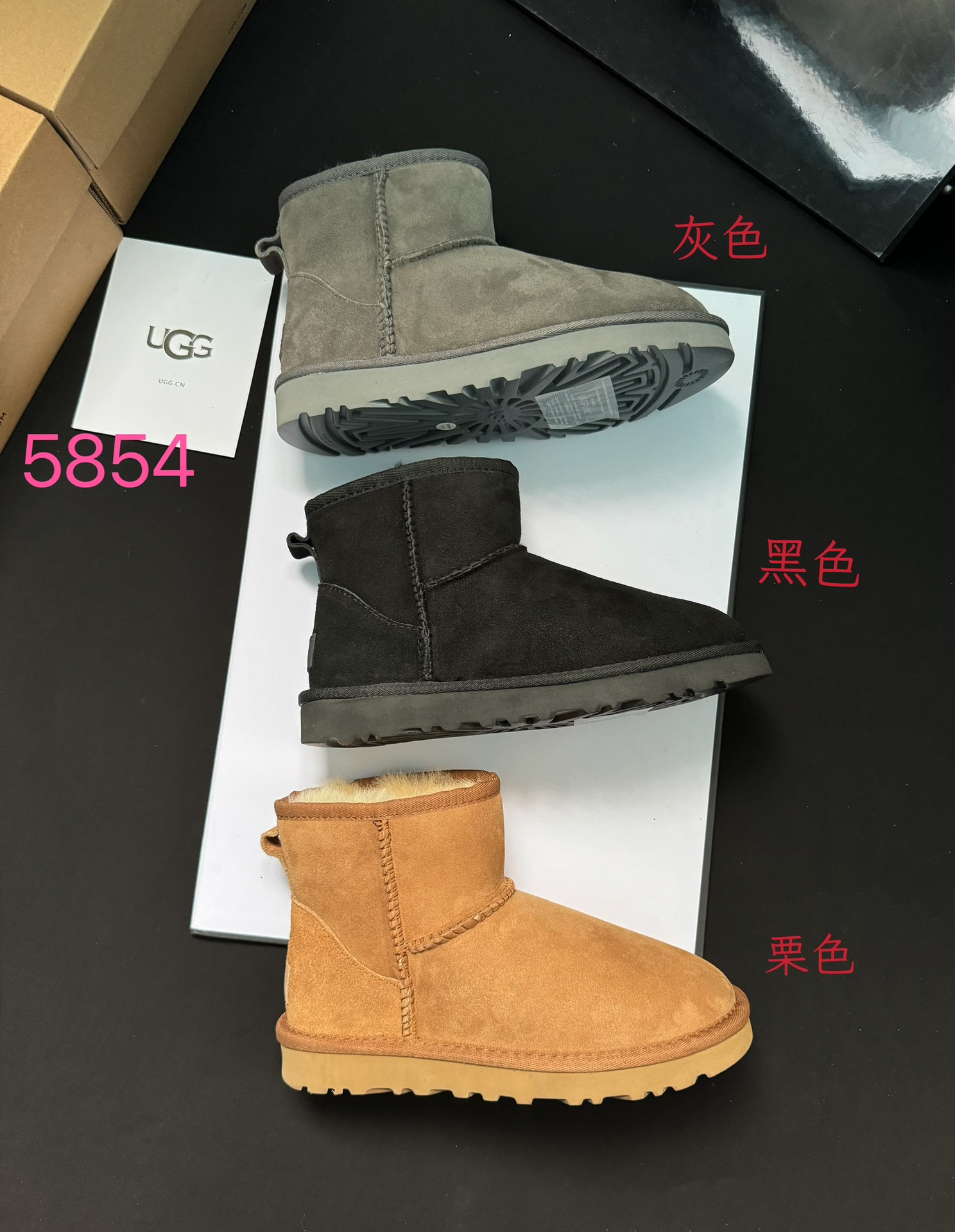 ugg雪地靴5854经典款。皮毛一体隆丰一级。代工生产线出品。大底 耐磨 对版太阳花大底。高级品质 非市场货 颜色:栗色。黑色。灰色。码数35-40