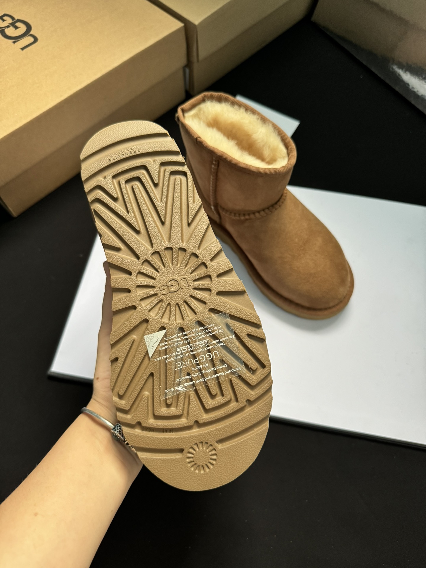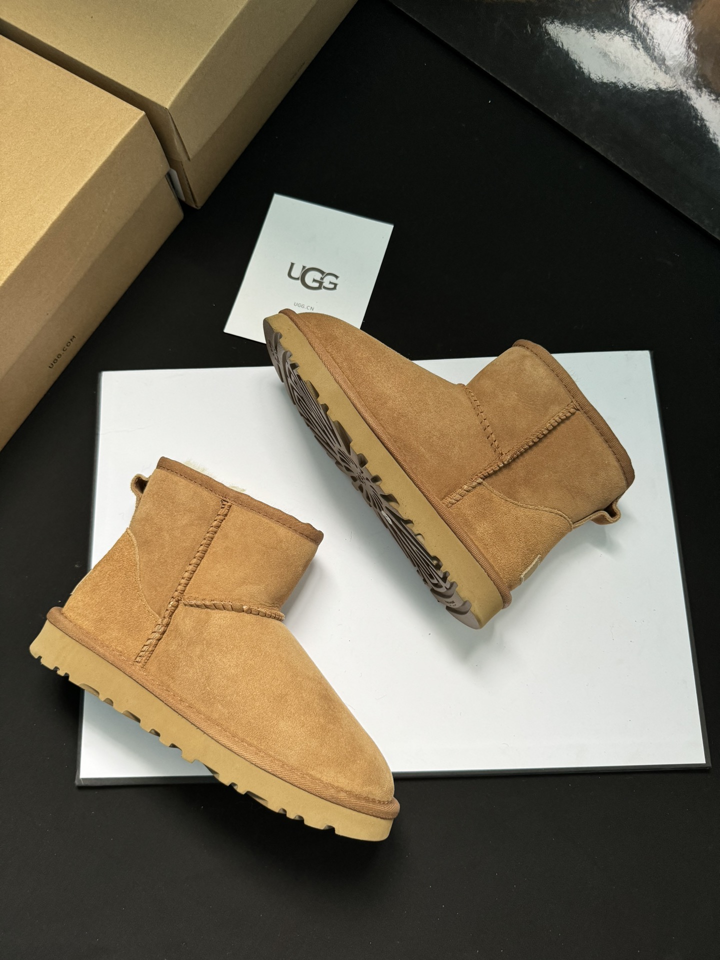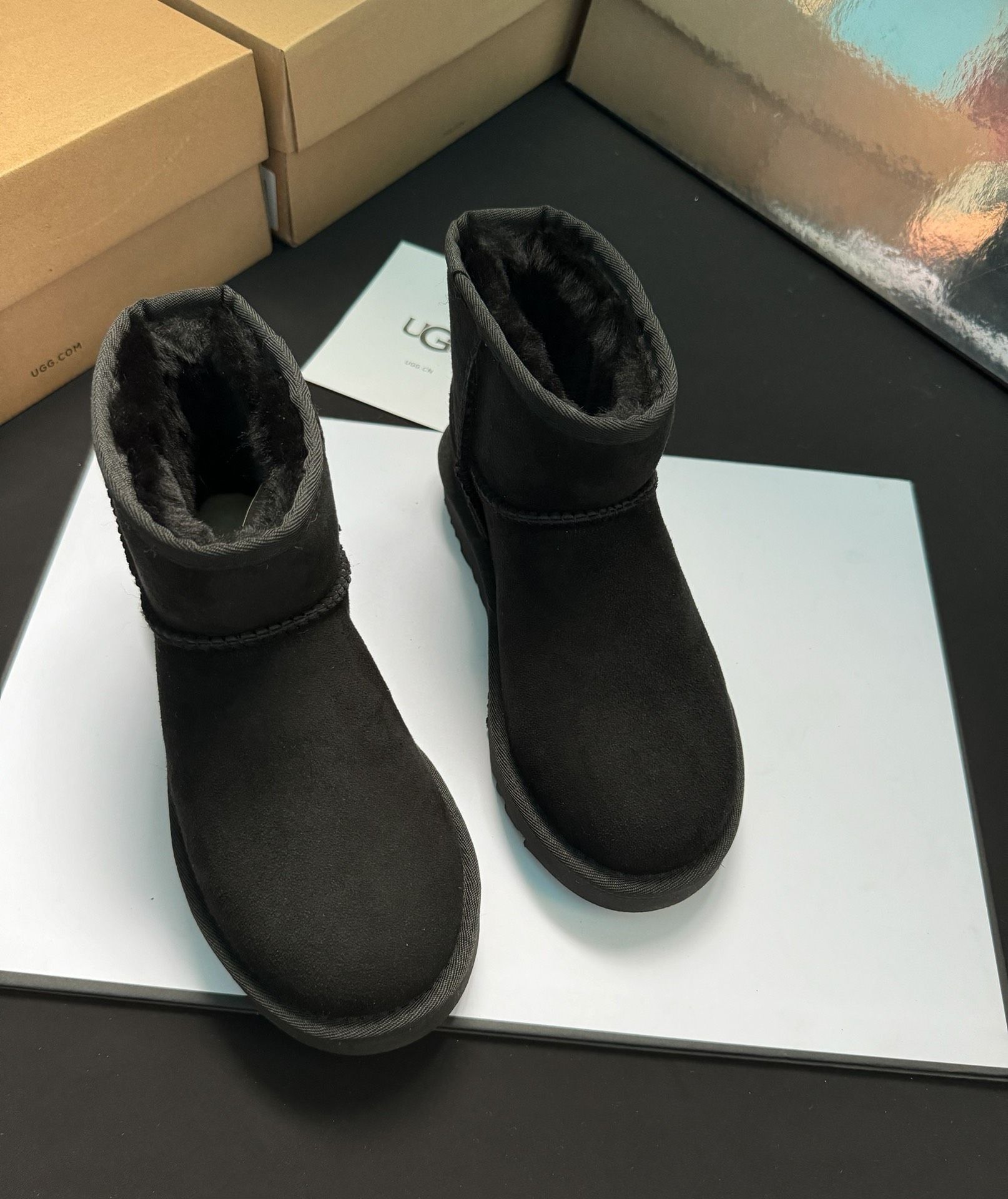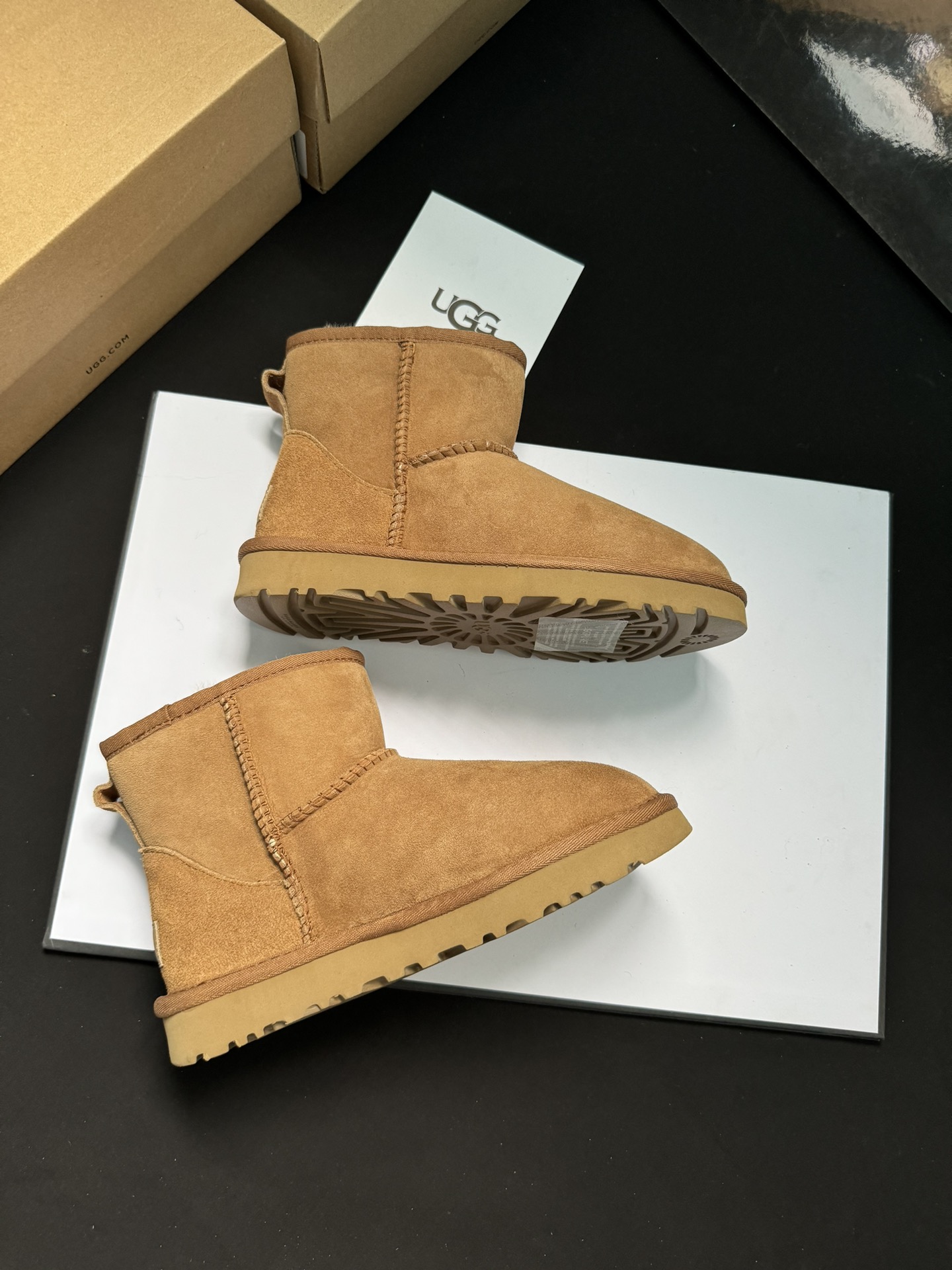 ugg雪地靴5854经典款。皮毛一体隆丰一级。代工生产线出品。大底 耐磨 对版太阳花大底。高级品质 非市场货 颜色:栗色。黑色。灰色。码数35-40