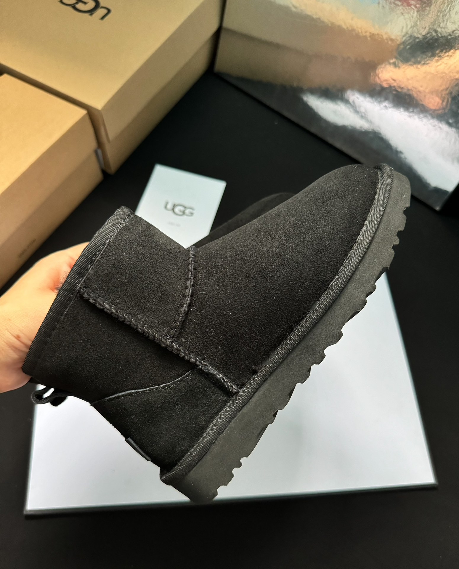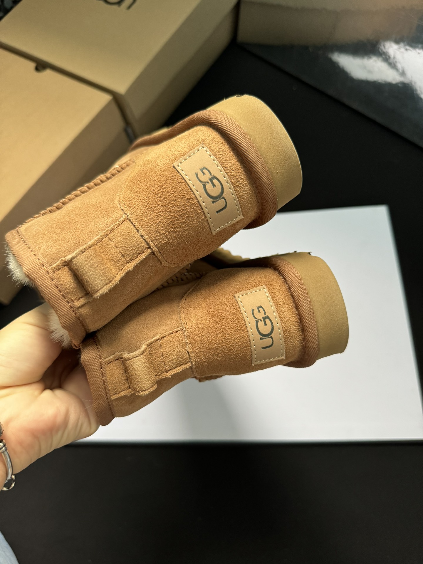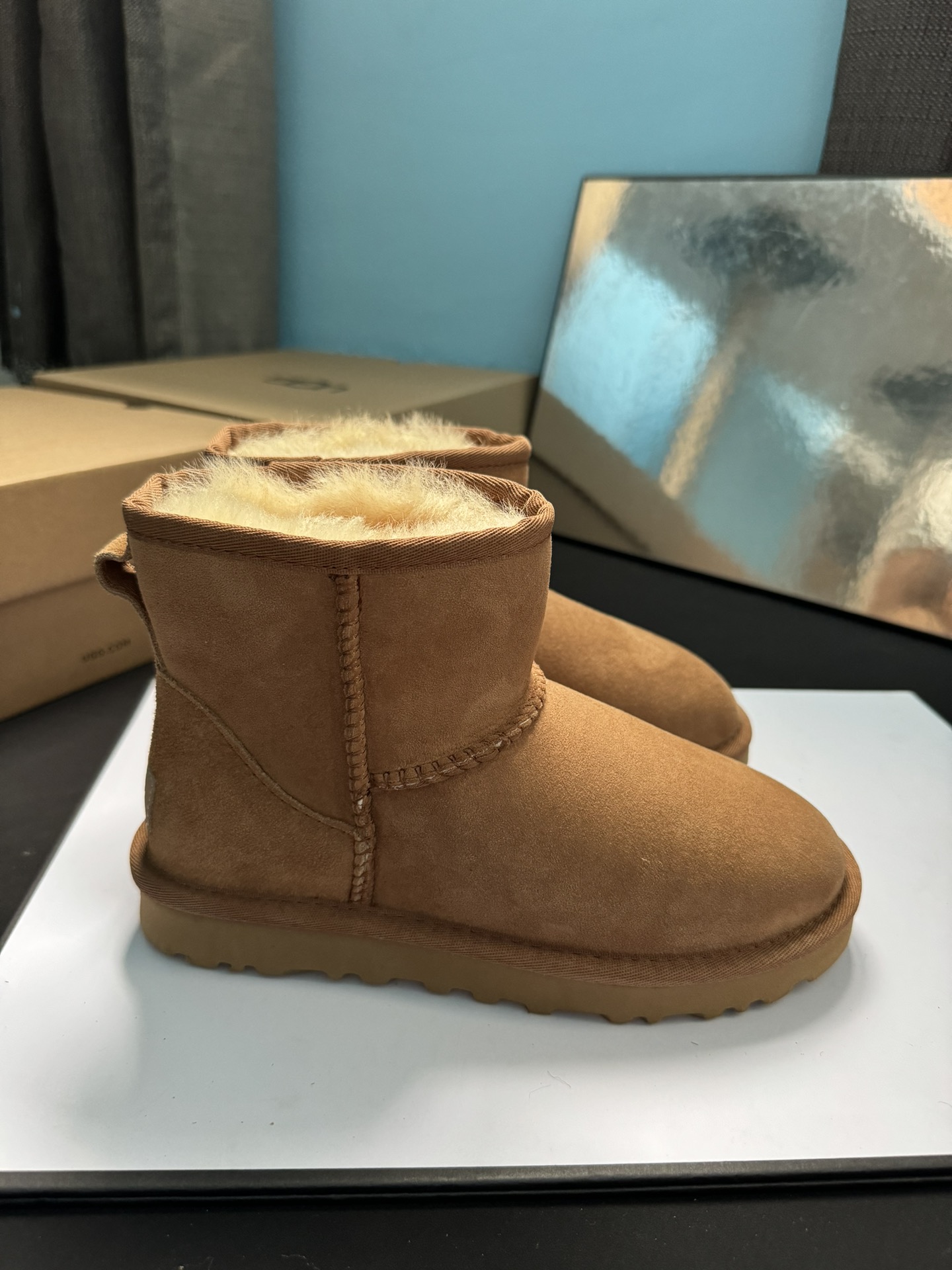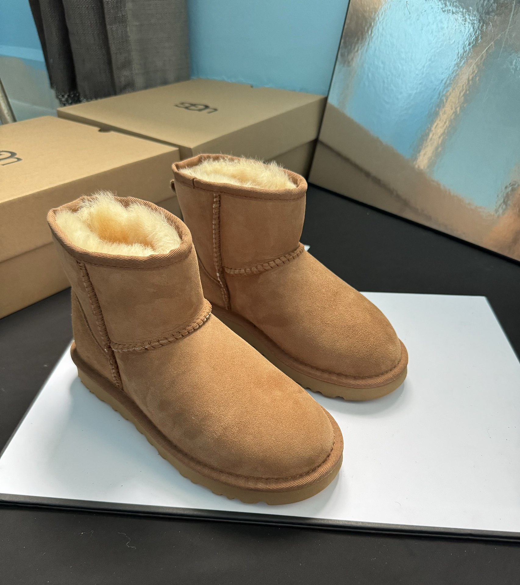 ugg雪地靴5854经典款。皮毛一体隆丰一级。代工生产线出品。大底 耐磨 对版太阳花大底。高级品质 非市场货 颜色:栗色。黑色。灰色。码数35-40