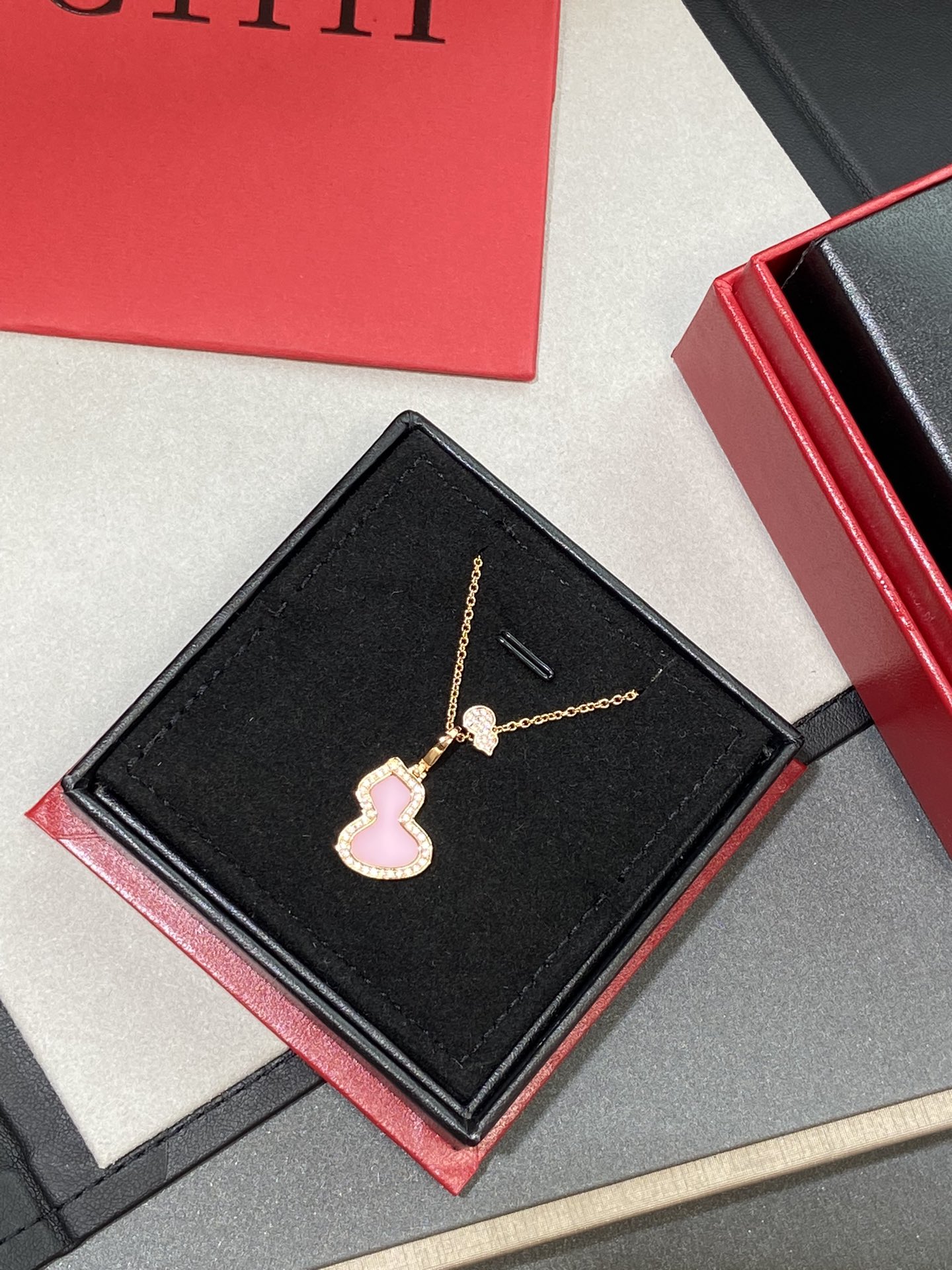 麒麟葫芦珠宝采用 中国元素与现代设计融合,红色的玛瑙配合Wulu的形状,似红叶绚烂,如花朵绽放,点缀于造型之中,用隽永之色迎春纳福采用V金镀金材质