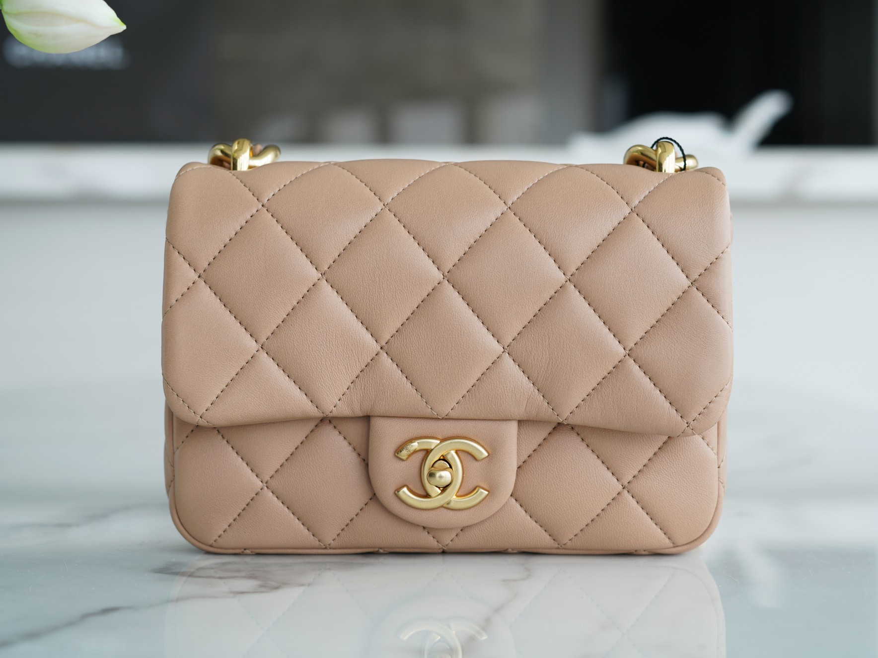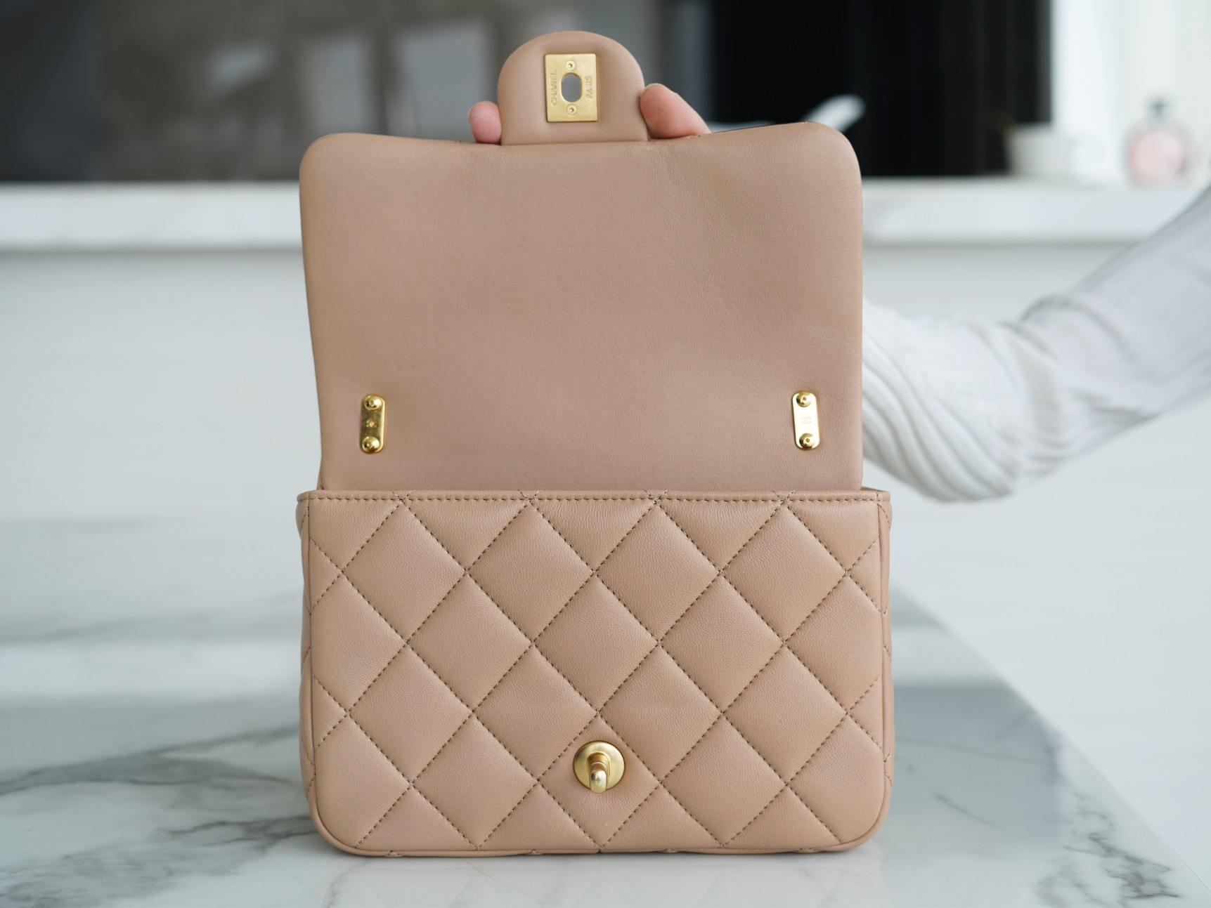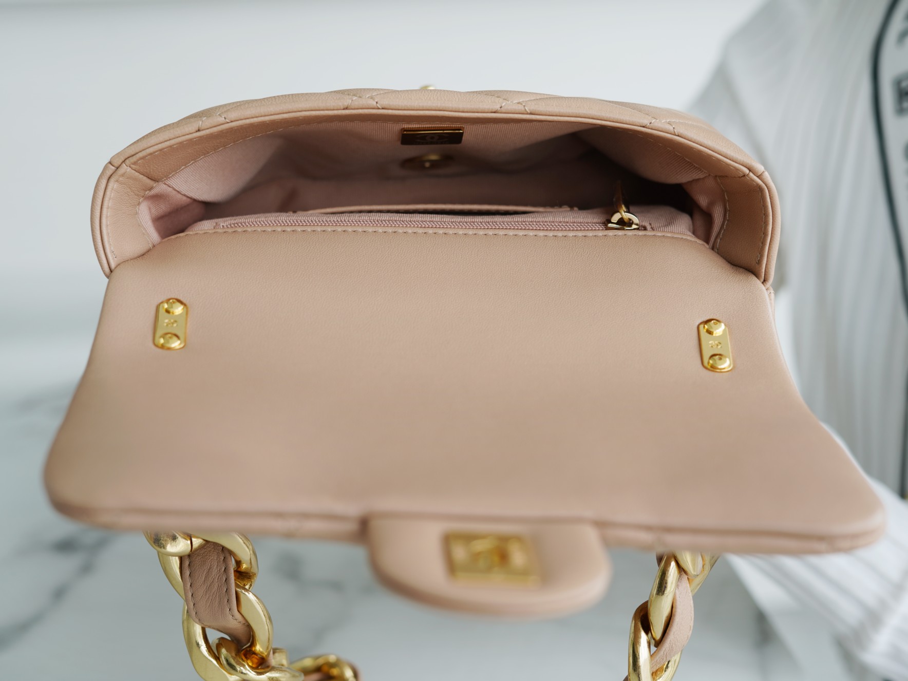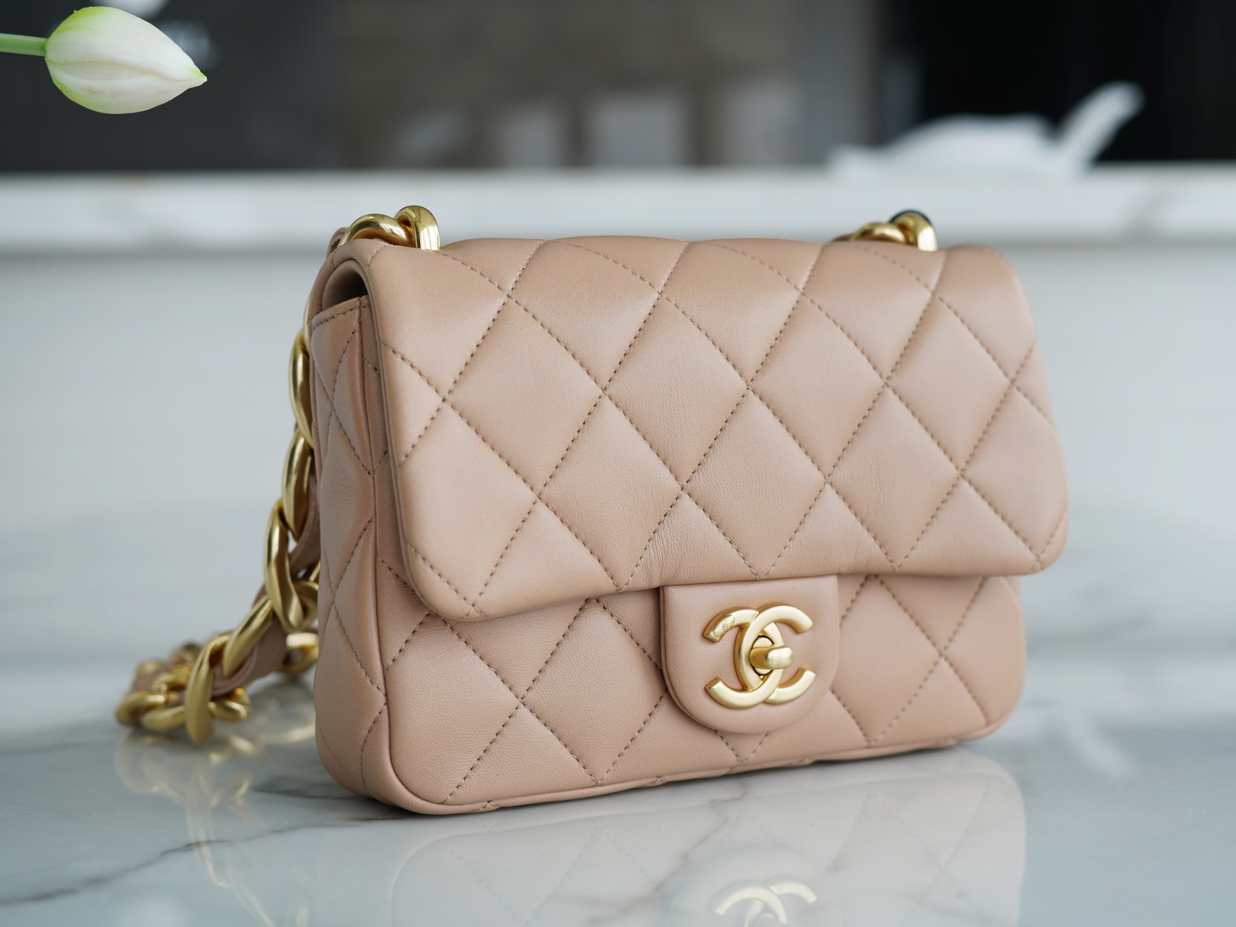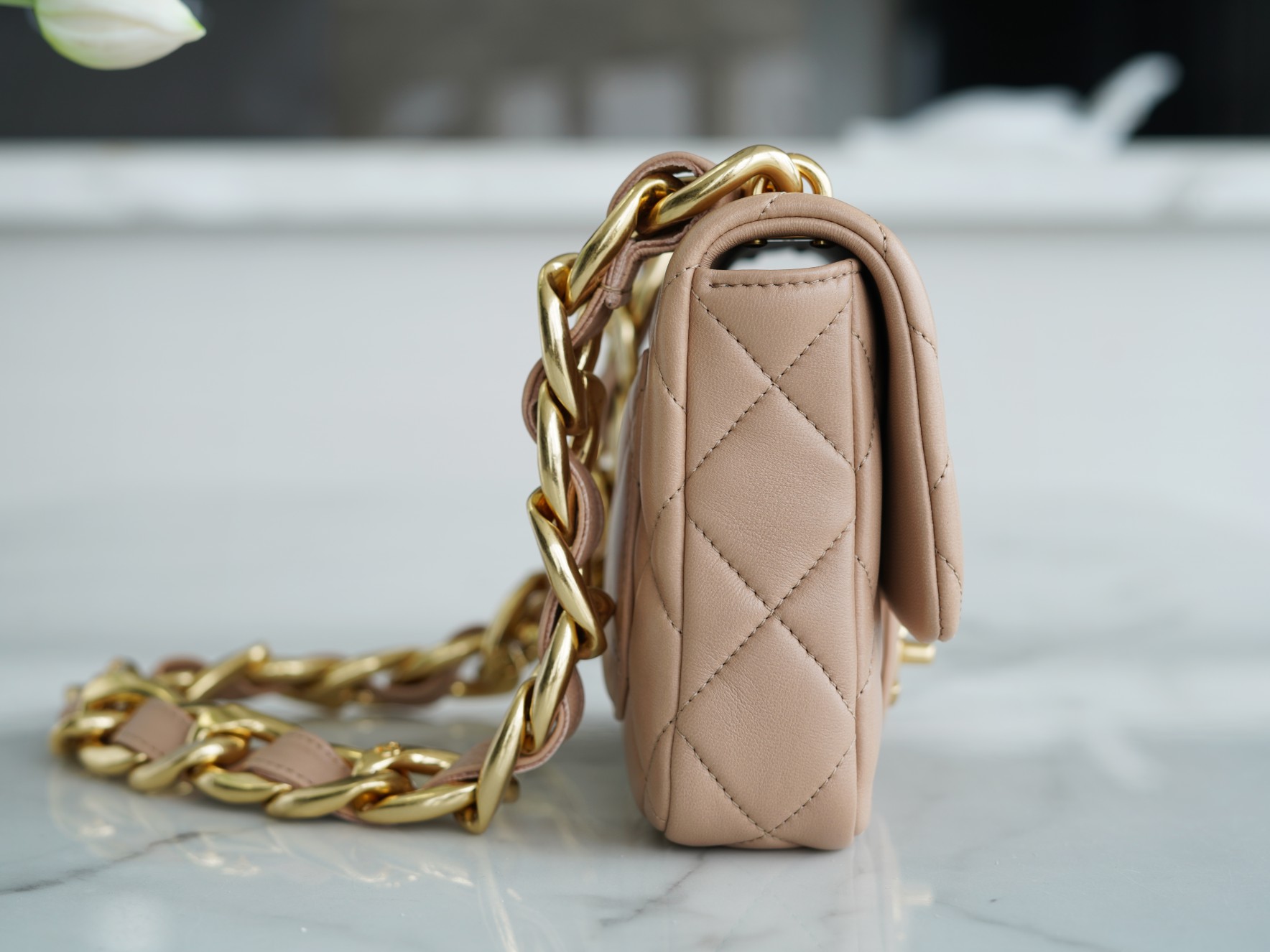 ???????????? ?????? 粗链条cf腋下包 奶茶色 ???????????? ????????春夏走秀款粗链条腋下包,意大利????《方框》原产小羊皮??、柔软而光滑,毛孔细腻,复古又百搭,可手拎可单肩,真的太洋翻了