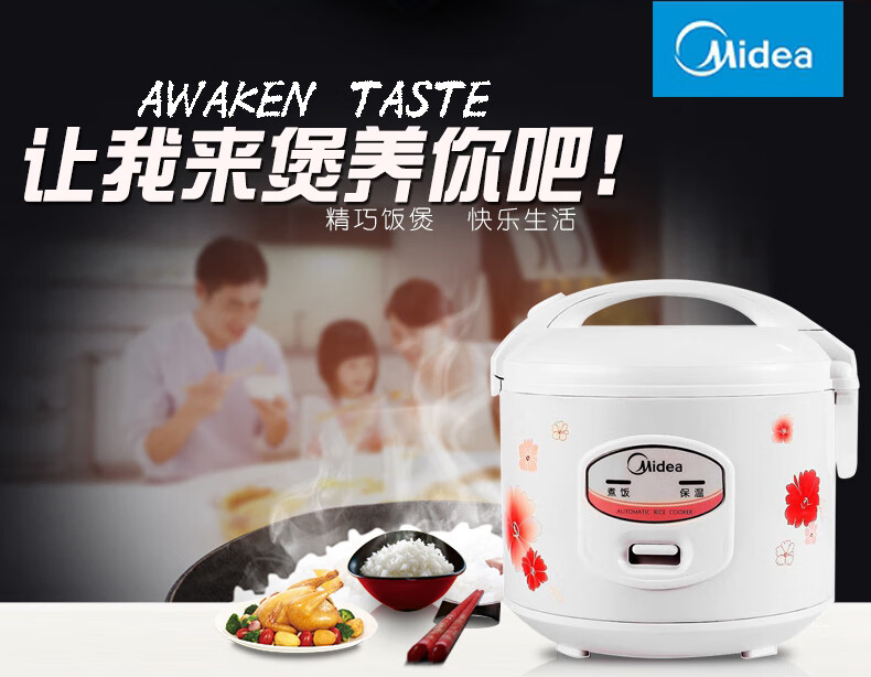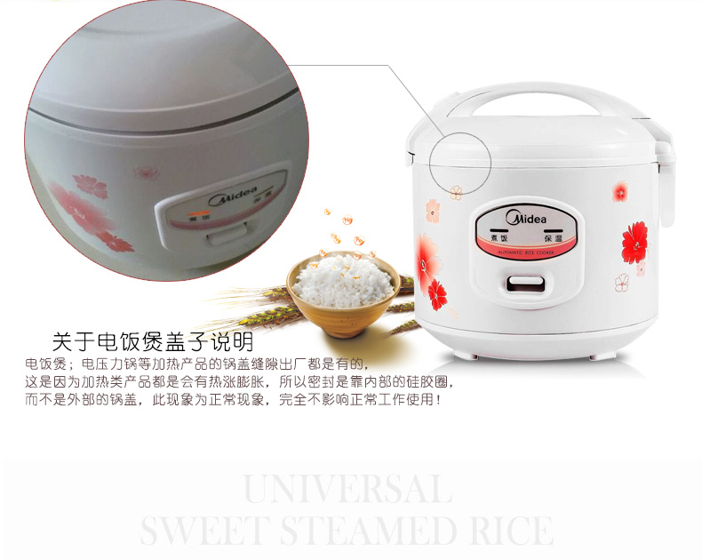 美的(Midea)老式电饭煲饭锅4L机械不粘内胆家用迷你白色印花可拆洗3-6人适用接水盒YJ408J(线下同款)