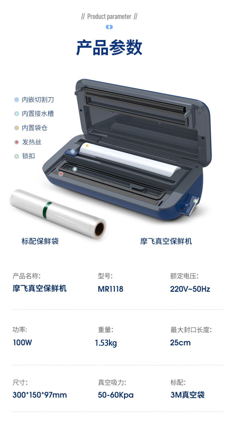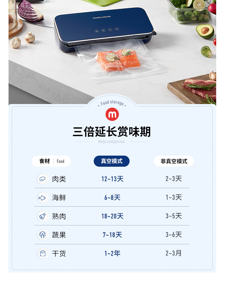 摩飞电器(Morphyrichards)真空封口机保鲜机家用包装机封口机干湿两用全自动食品抽真空料理机MR1118