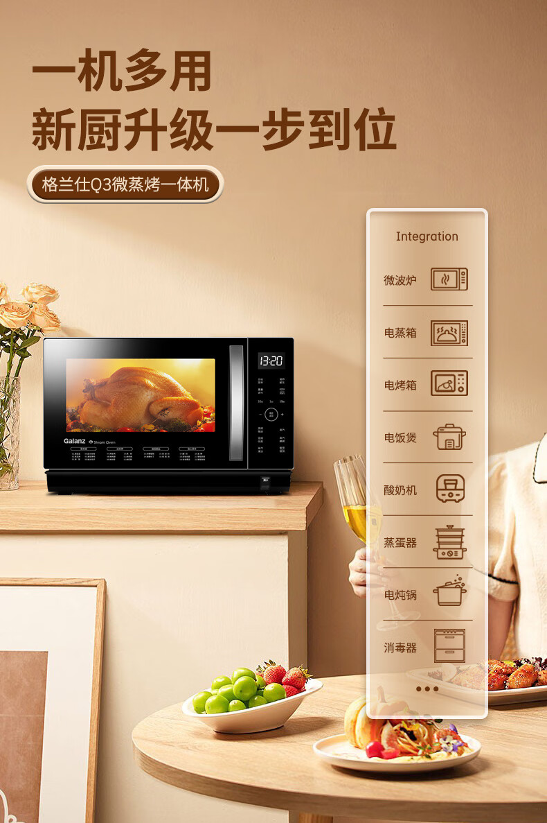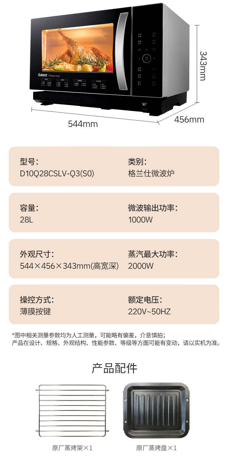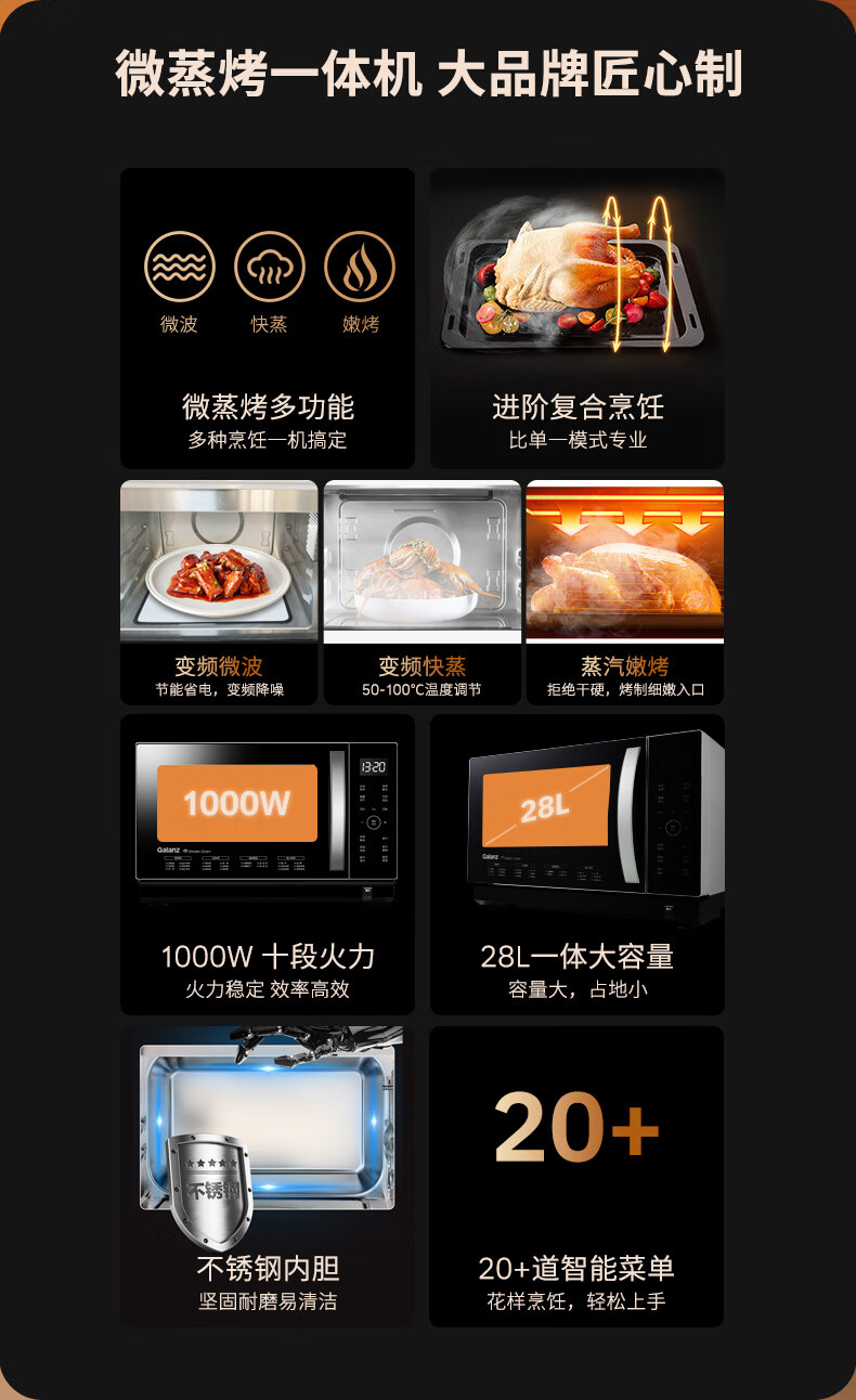 格兰仕(Galanz)微蒸烤一体机 28升变频微波炉烤箱一体机 直喷蒸汽纯蒸 微波炉烤箱蒸箱三合一 D10Q28CSLV-Q3(S0)