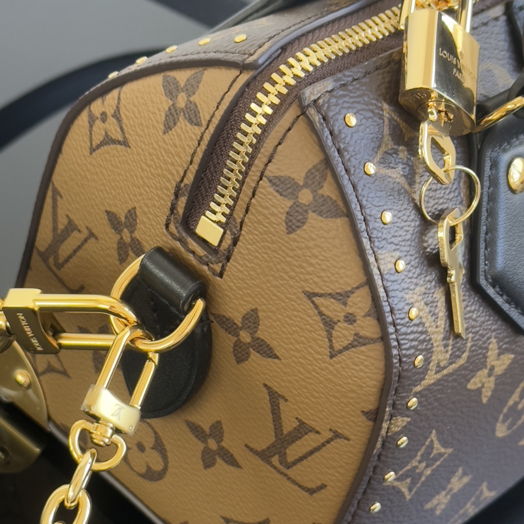 MB原厂皮 M13146 SPEEDY TRUNK手袋 独家渠道货 细节实拍图!MB在于品质、五金、面料、手工、油边、A级高品质出品、全面再次升级、拍摄图跟产品一致丶 360度无死角 随意看看 尺寸:20.0×12.0×14.0 cm