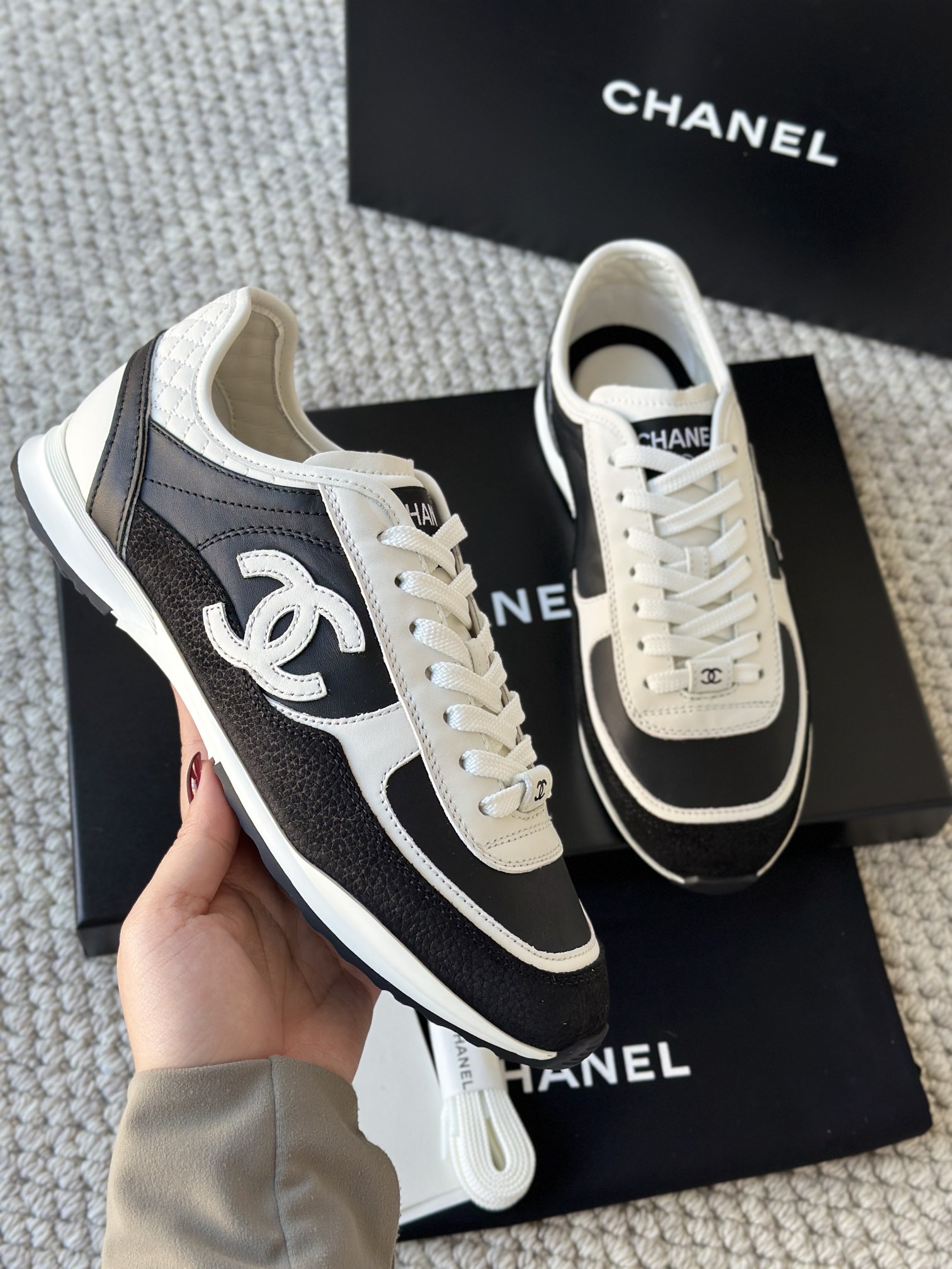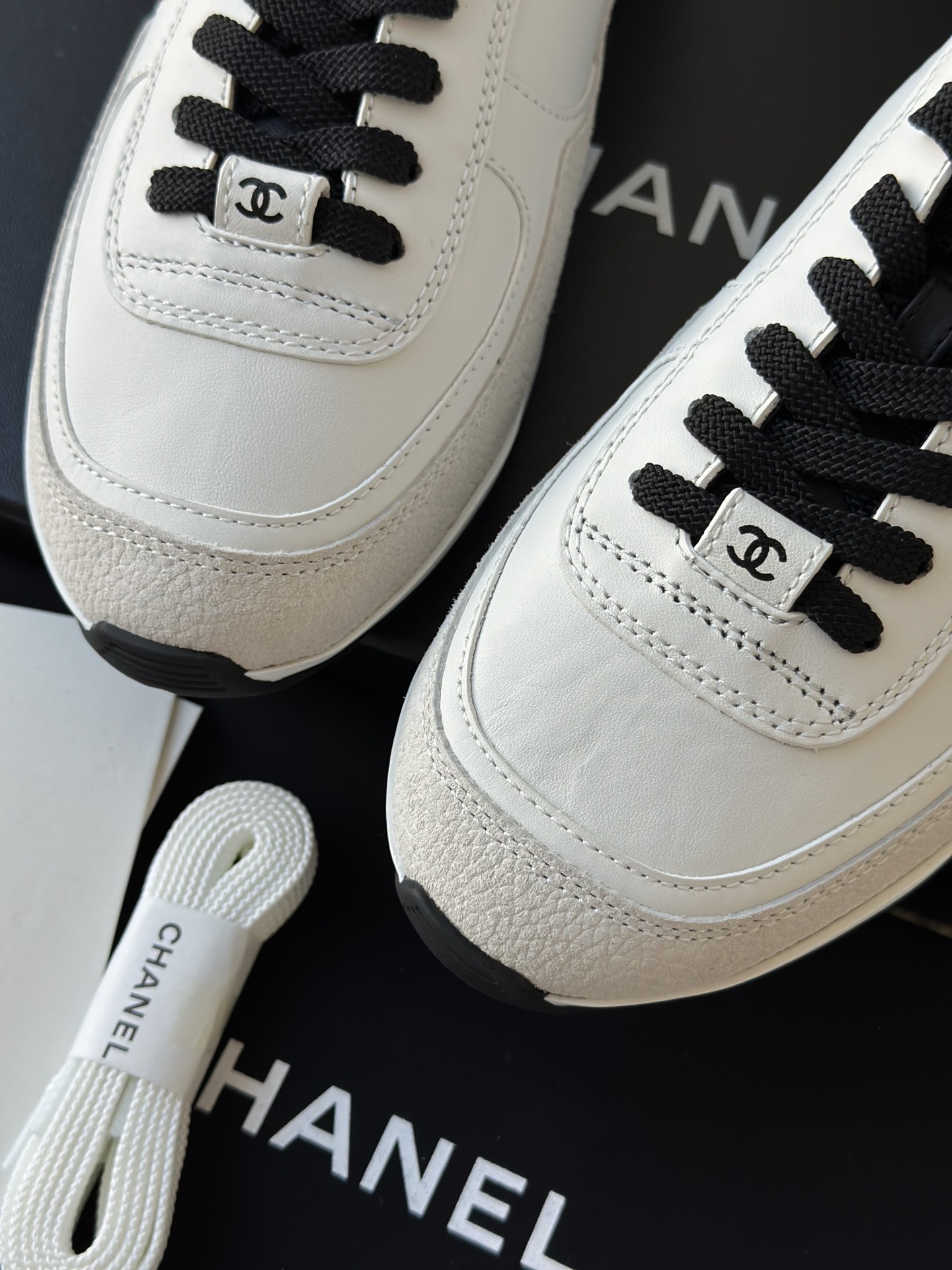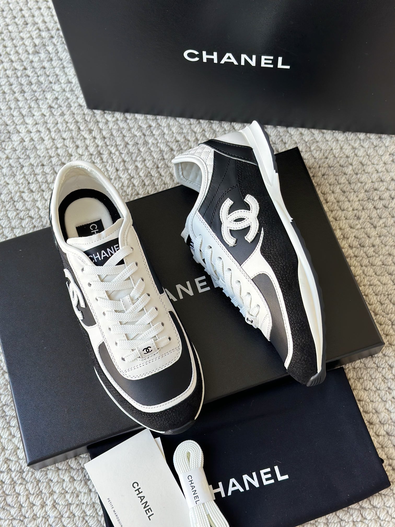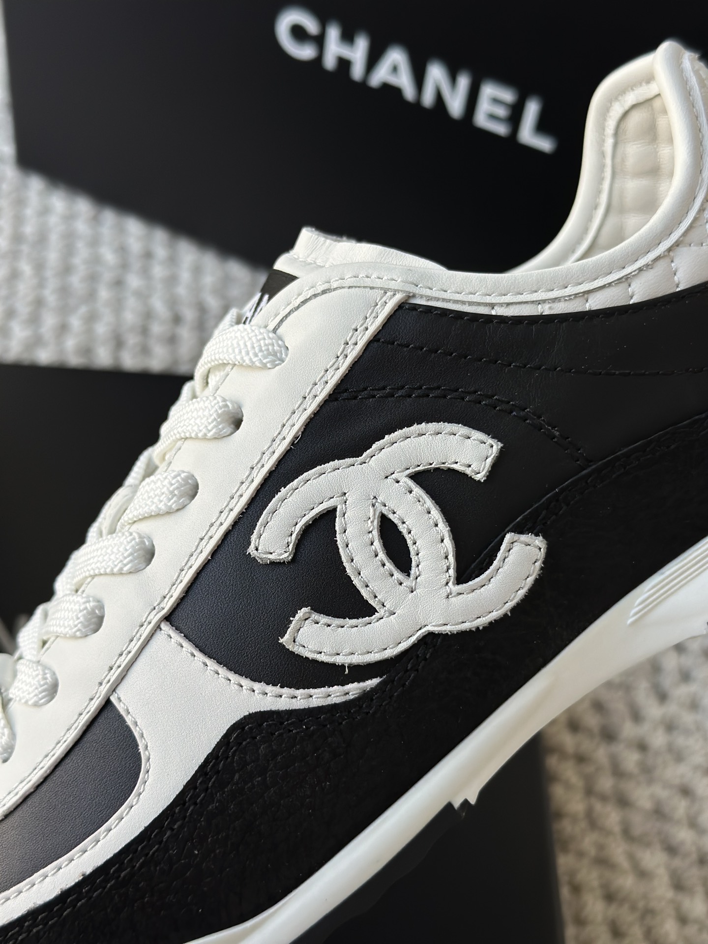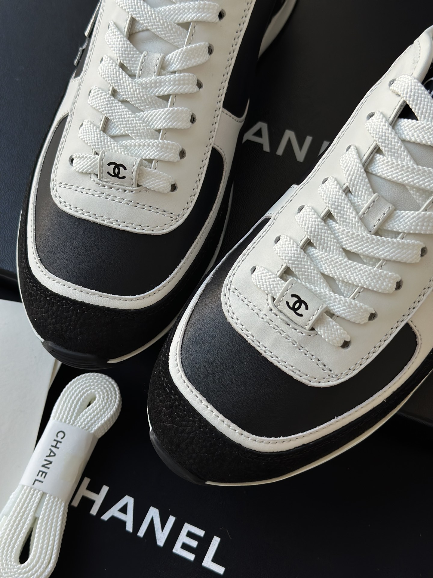 简约的黑白熊猫配色,永不过时,微微尖的德训鞋头更显脚瘦,小牛皮面跟反绒材质的碰撞,时尚,非常上脚舒适!