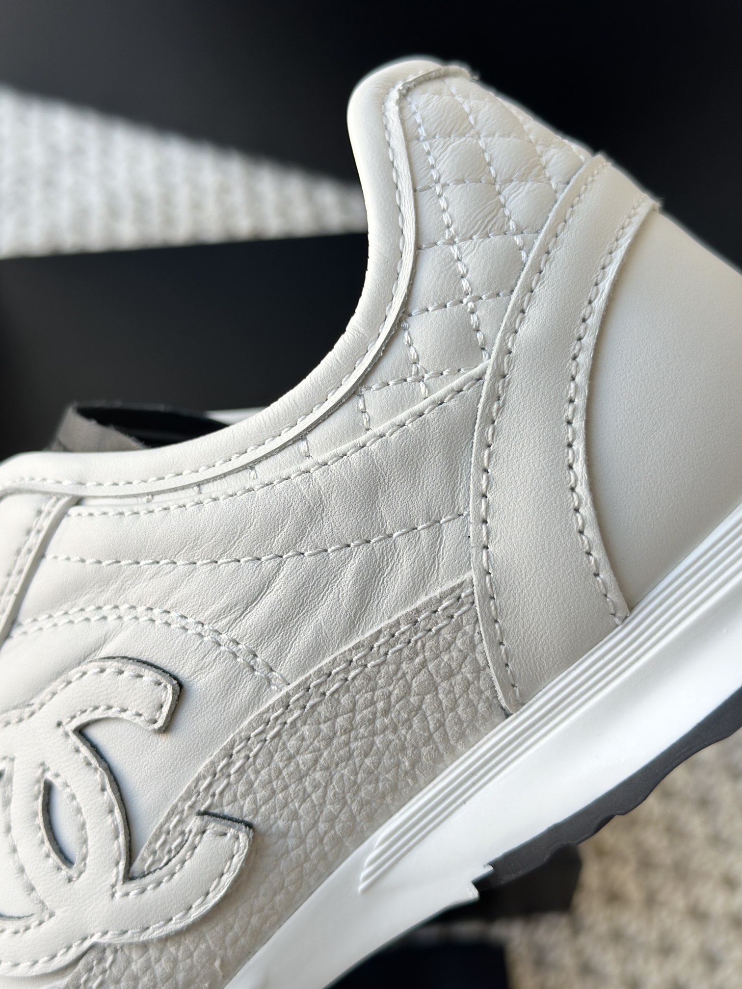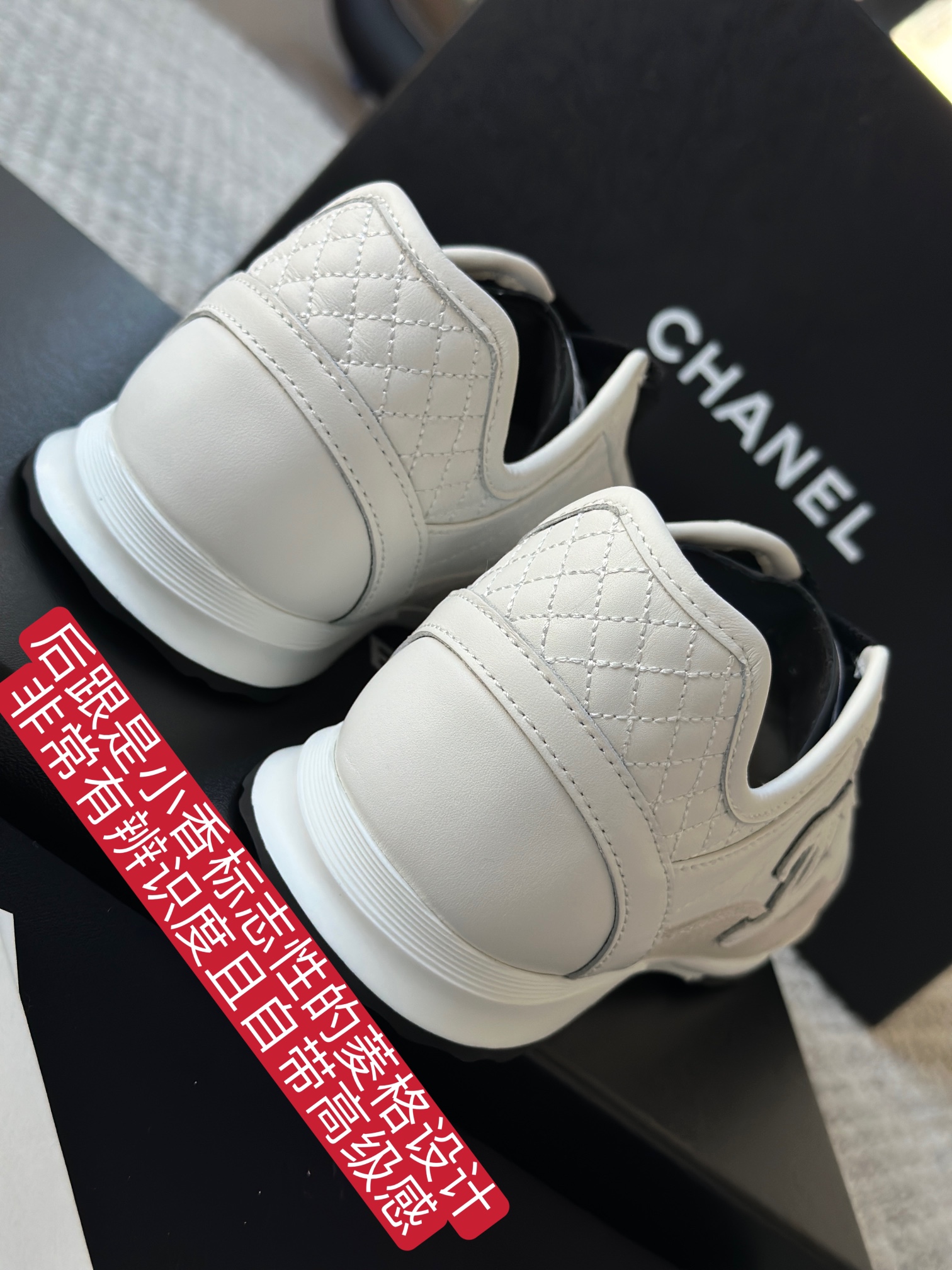 后跟小香标志性的菱格走线 每一针每一线包括每个细节和面料 都能看出来它的精致