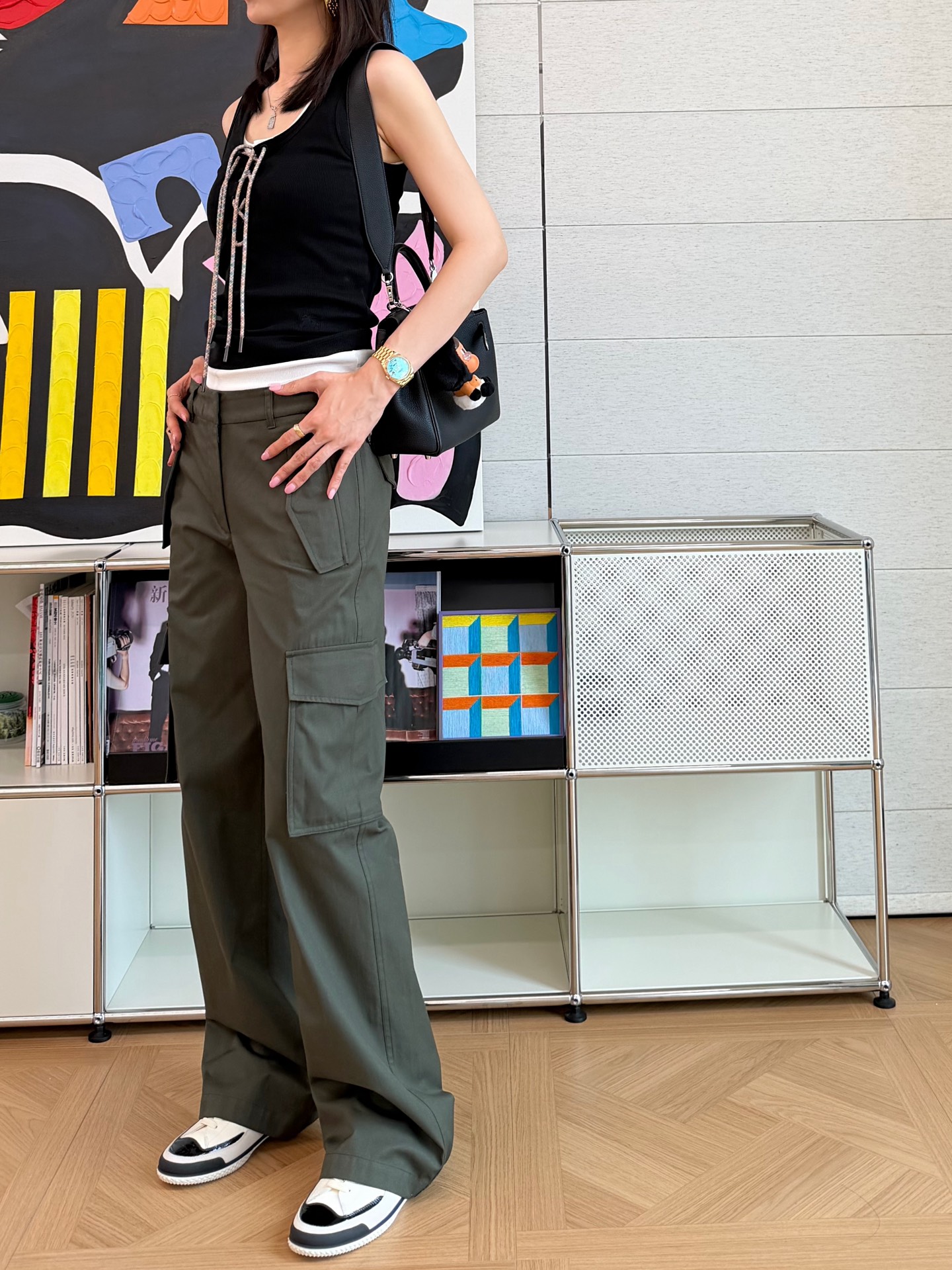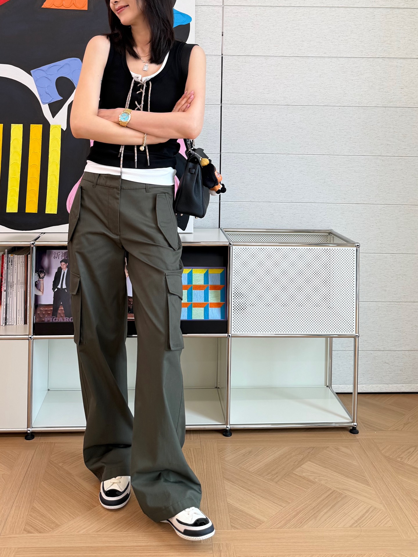 【新品发售】2026春夏🆕橄榄绿工装裤真的封神📝自带高级滤镜的色系⚠️上身温柔又有辨识度✨ 利落的阔腿版型太懂藏肉❗️YB定制斜纹面料 颜色定染!完美还原YB📸面料清爽透气!非常实穿🤩立体大口袋设计既保留了工装的随性帅气😎又能修饰腿型拉长比例💫搭配简单背心就能穿出不费力的松弛感😍春日出街/日常通勤都妥妥的🍒谁穿谁是大长腿🥳🥳码数SML