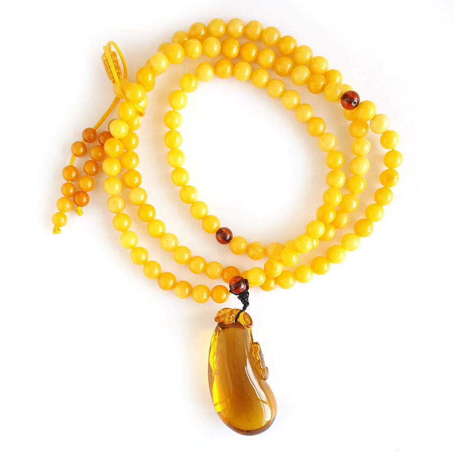 名称 | 天然无杂裂3A级净水福瓜造型墨西哥蓝珀蜜蜡珠串吊坠项链 |