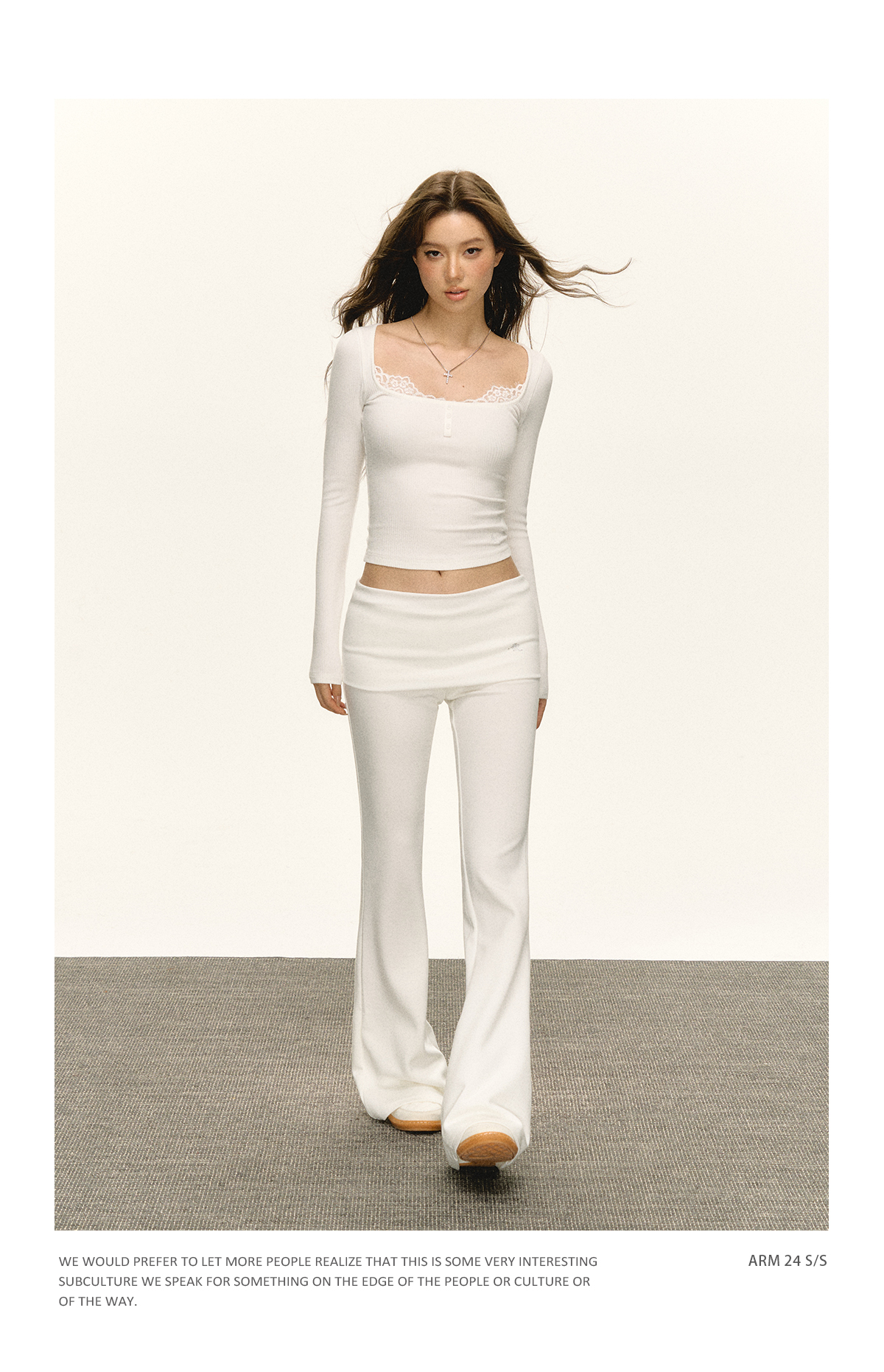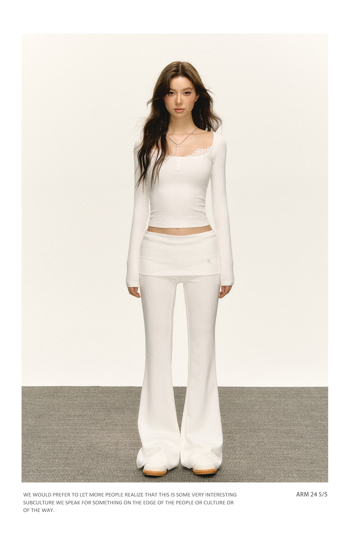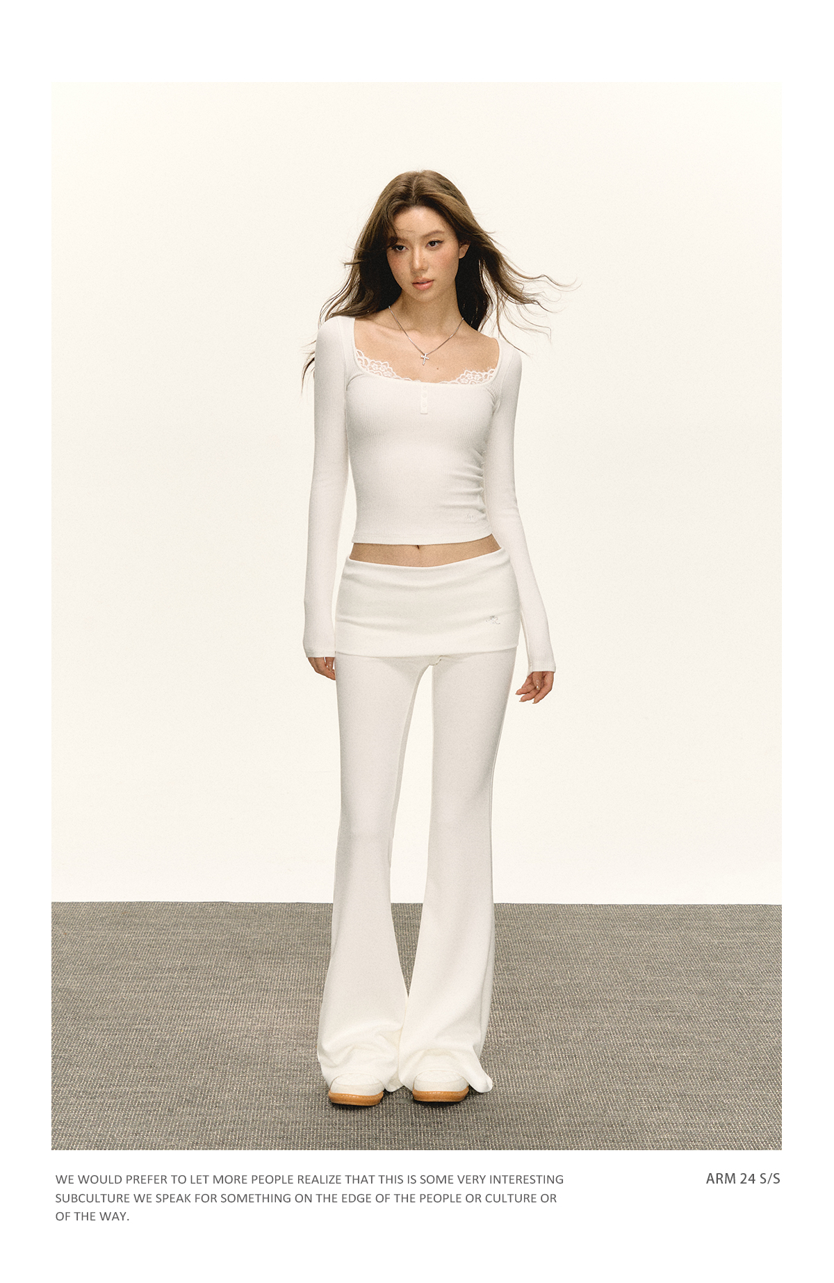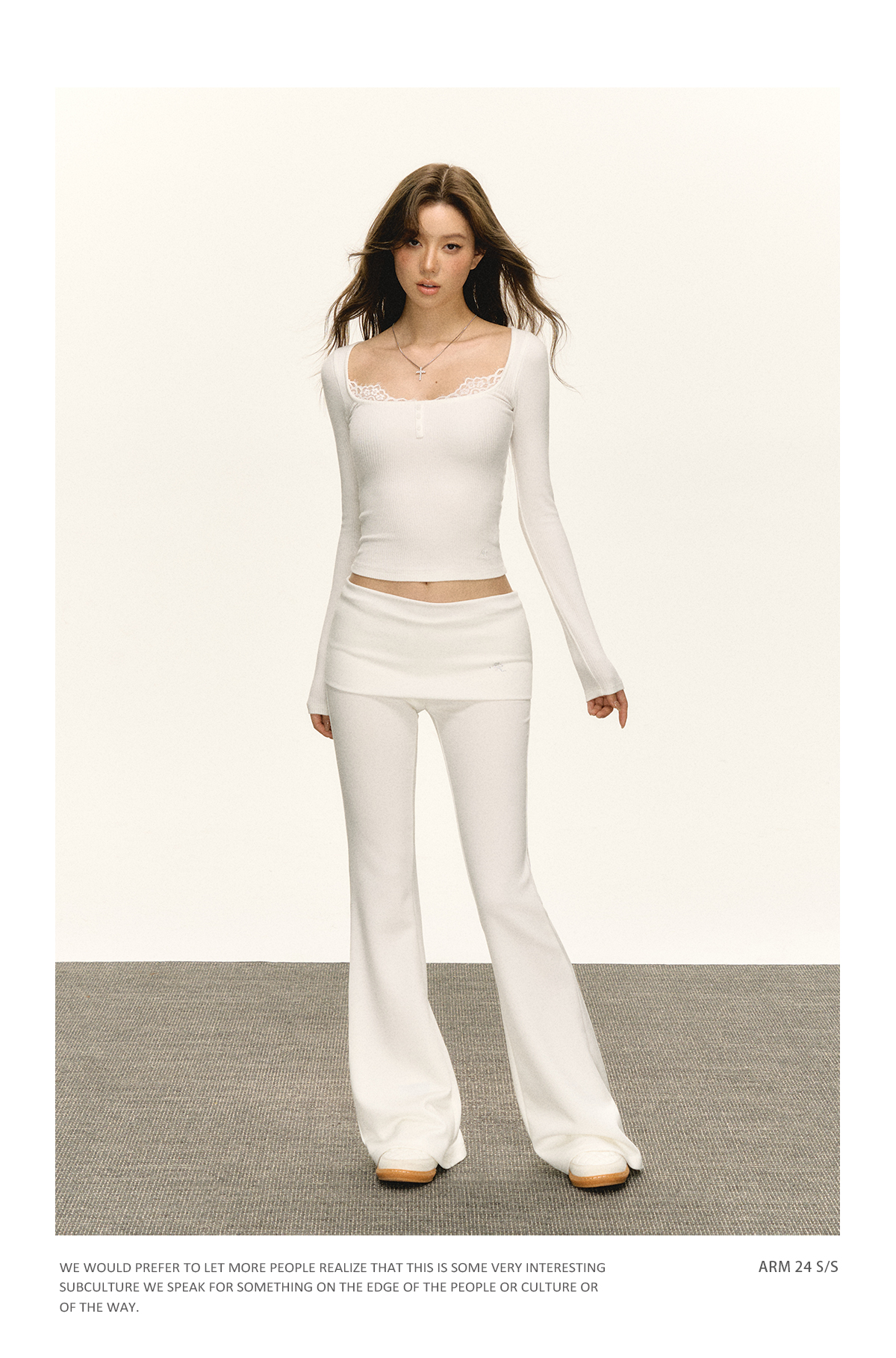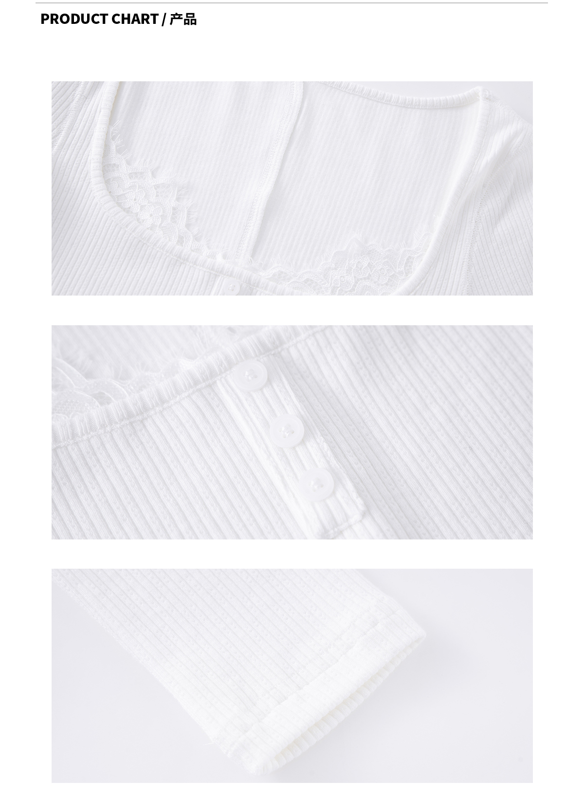 Ariseism 美式复古翻领蕾丝长袖T恤女春季新款修身上衣内搭打底衫