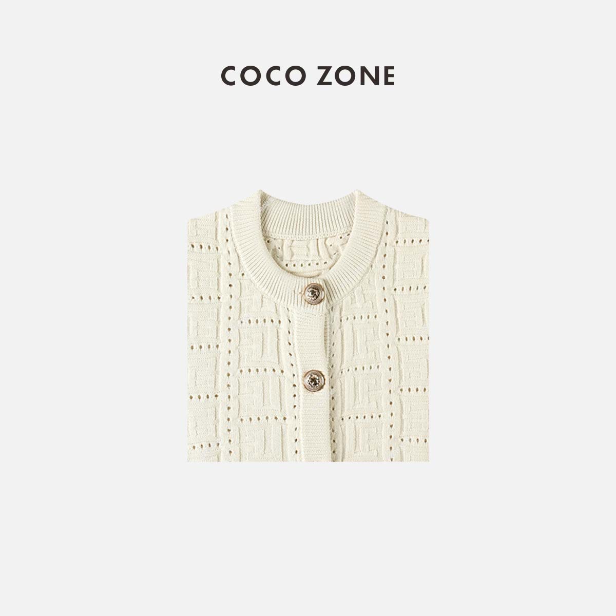 COCO ZONE 简约复古纽扣字纹图案圆领针织开衫短上衣 23C18593