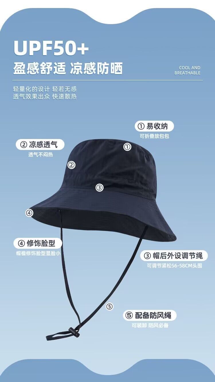 路悠悠露营超薄户外登山防晒帽渔夫帽C-092-卡其