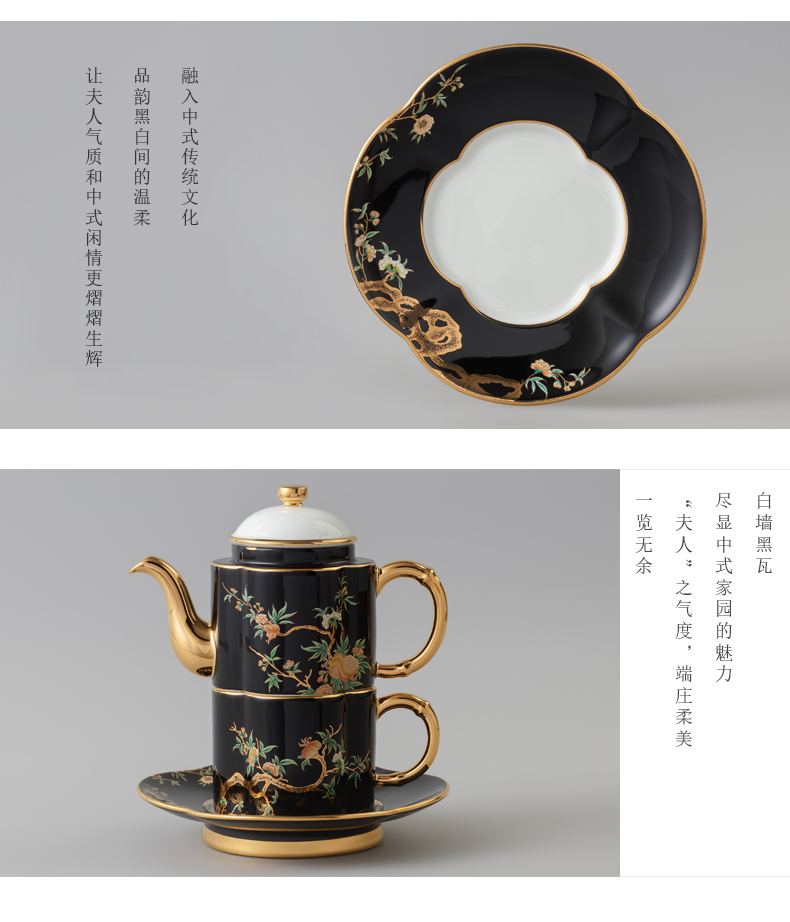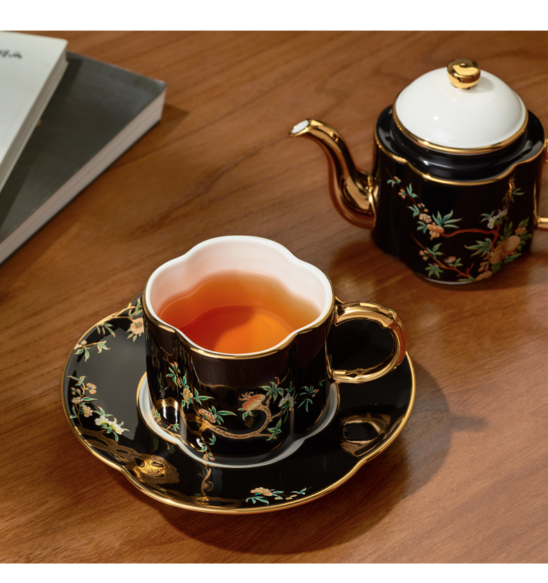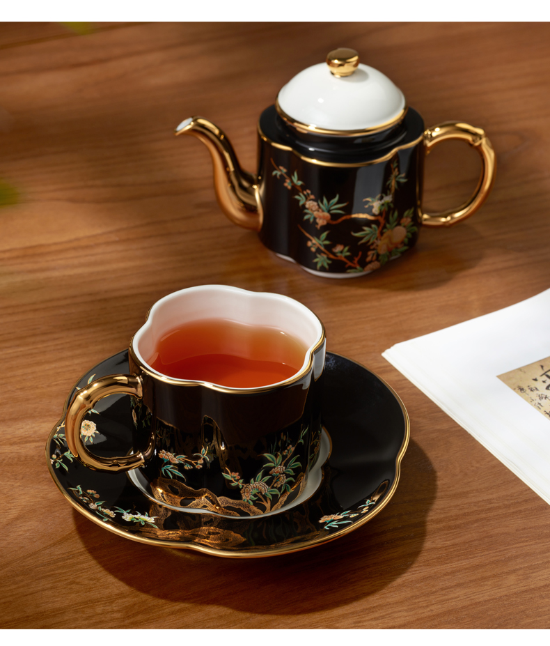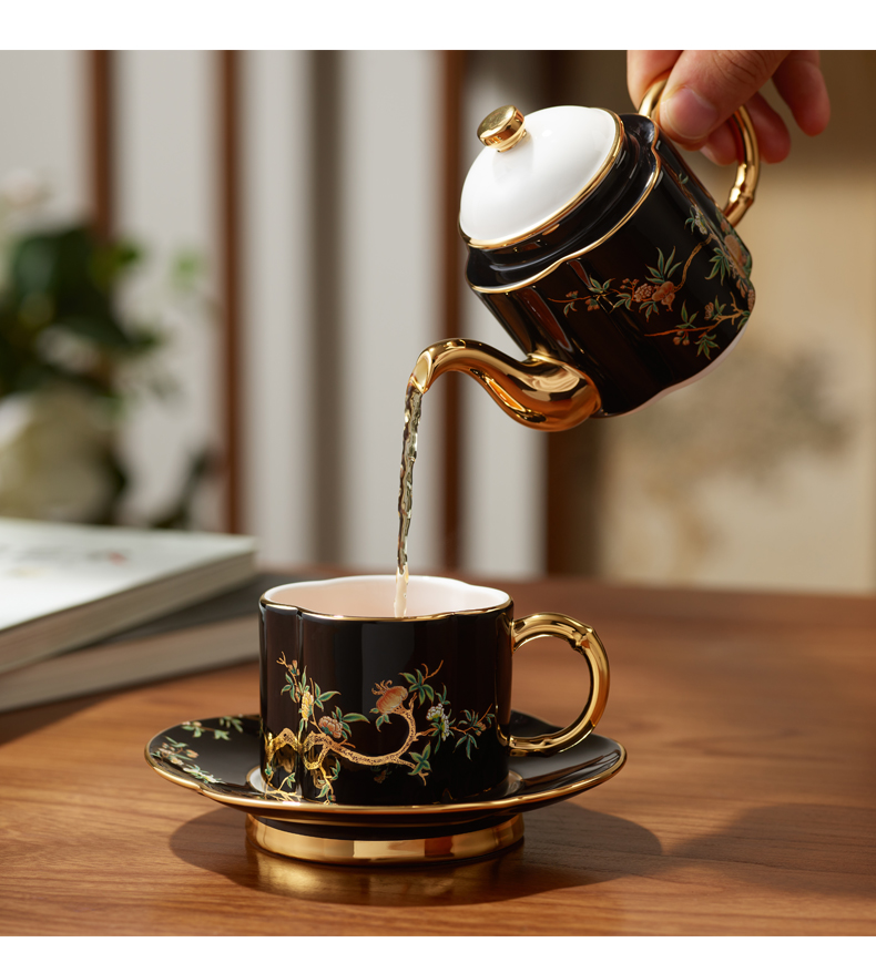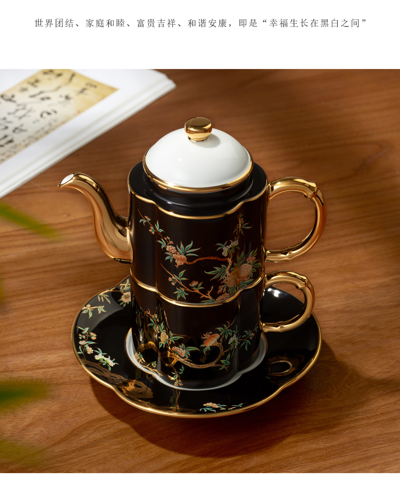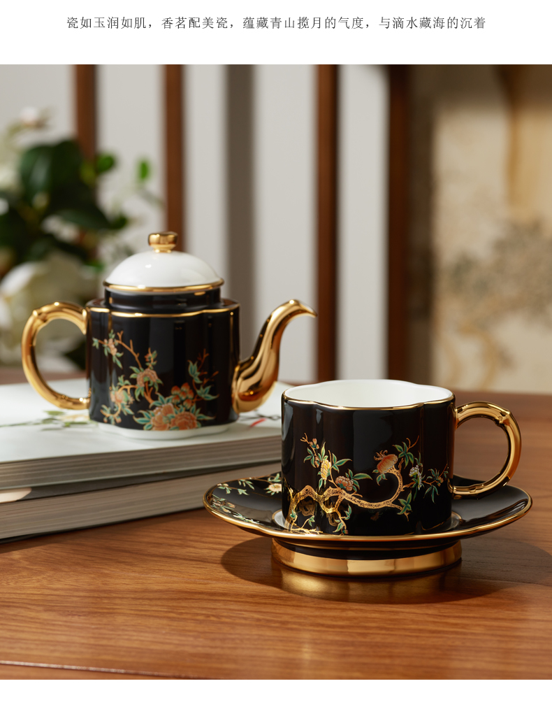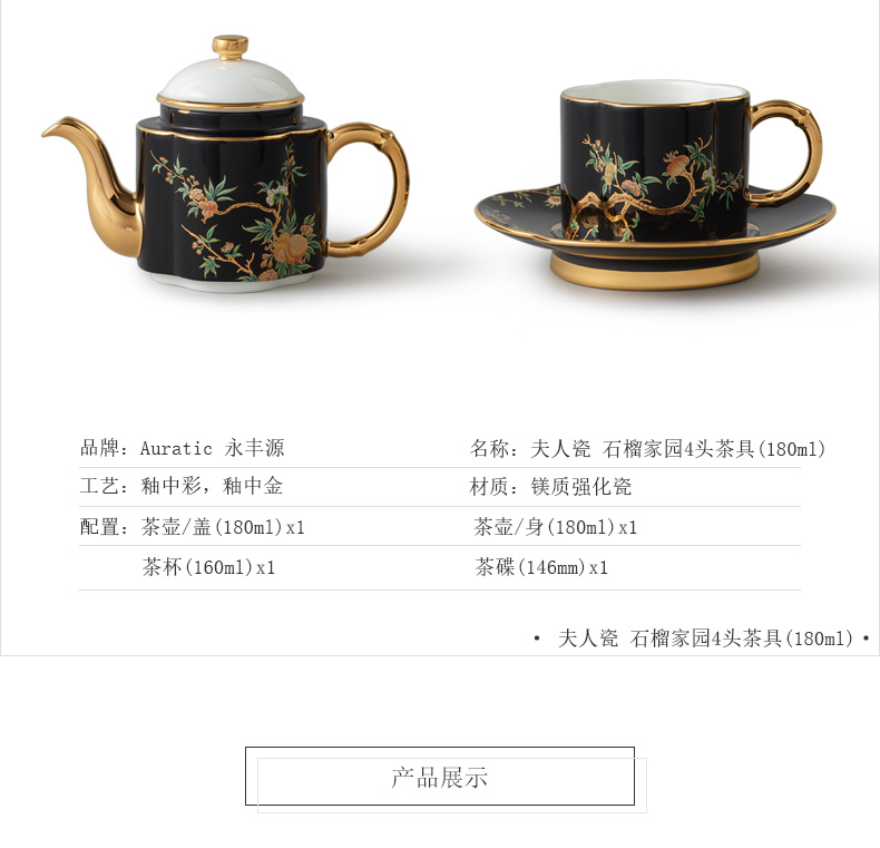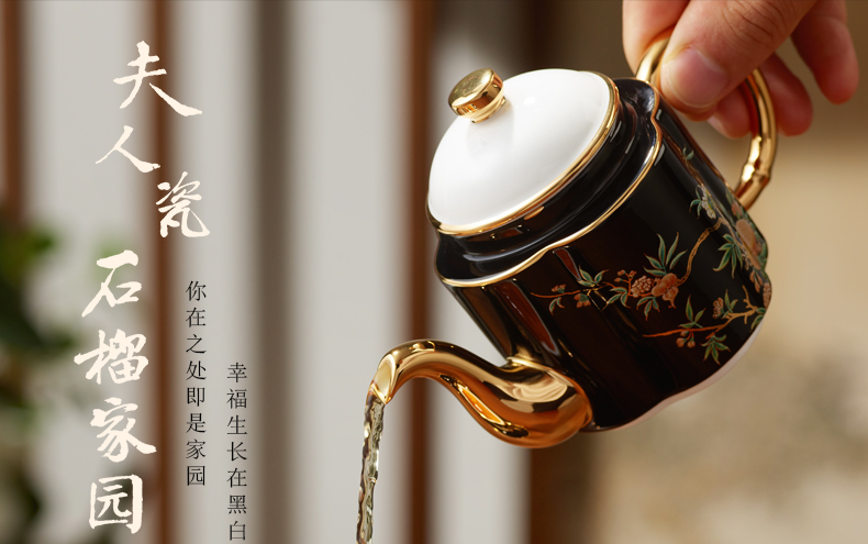永丰源夫人瓷石榴家园4头茶具陶瓷茶具套装轻奢描金茶壶茶杯碟