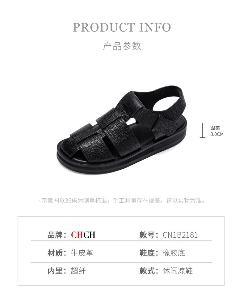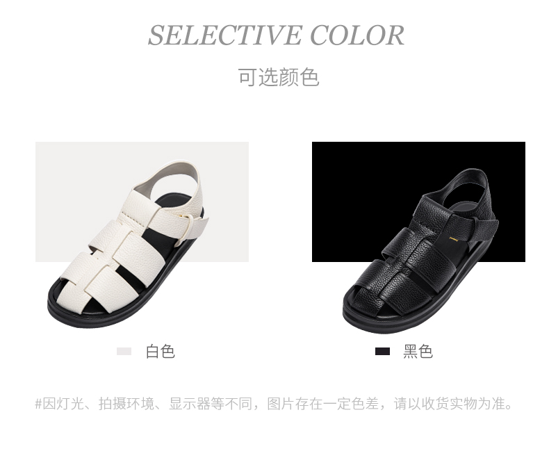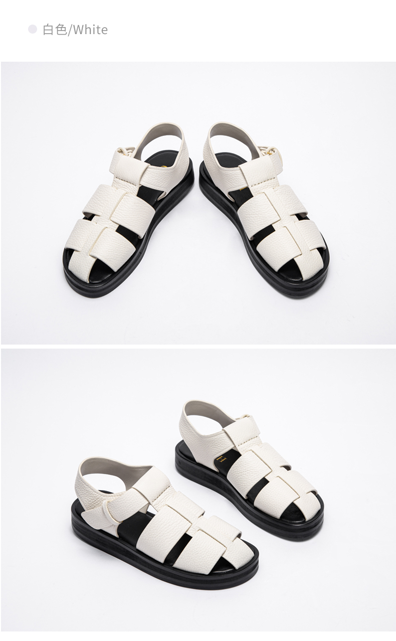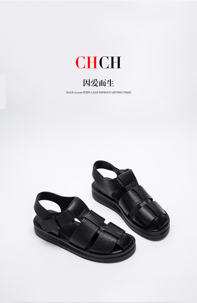 CHCH2024夏季女鞋包头真皮平底猪笼鞋复古缕空编织罗马鞋女鞋