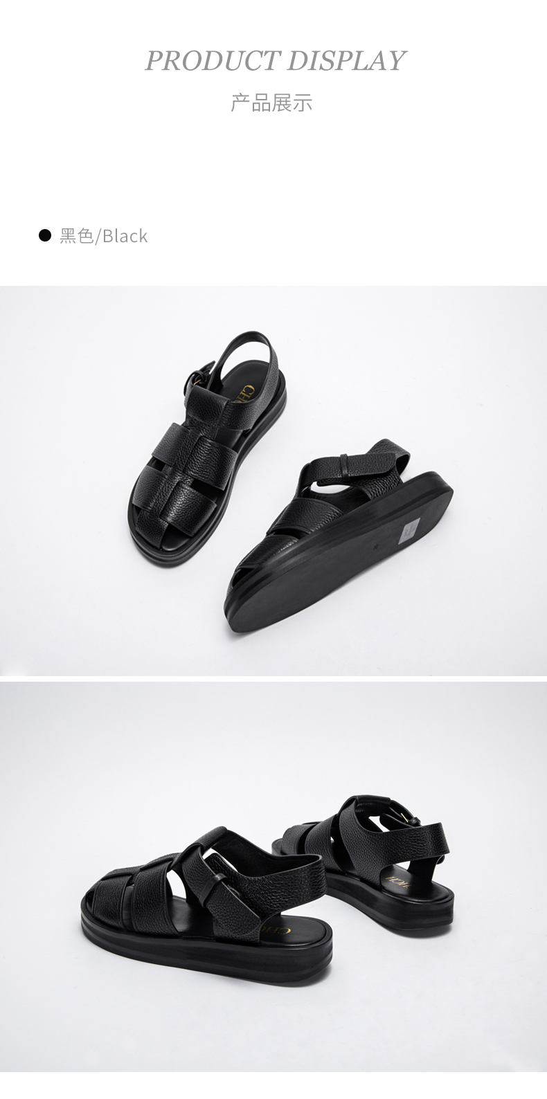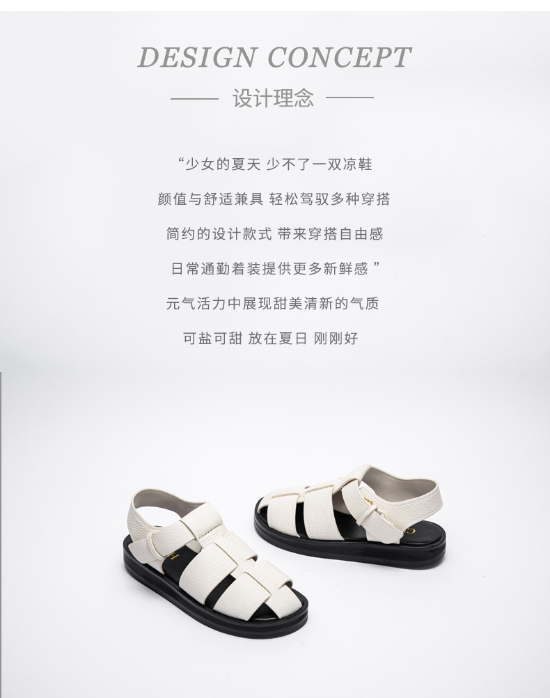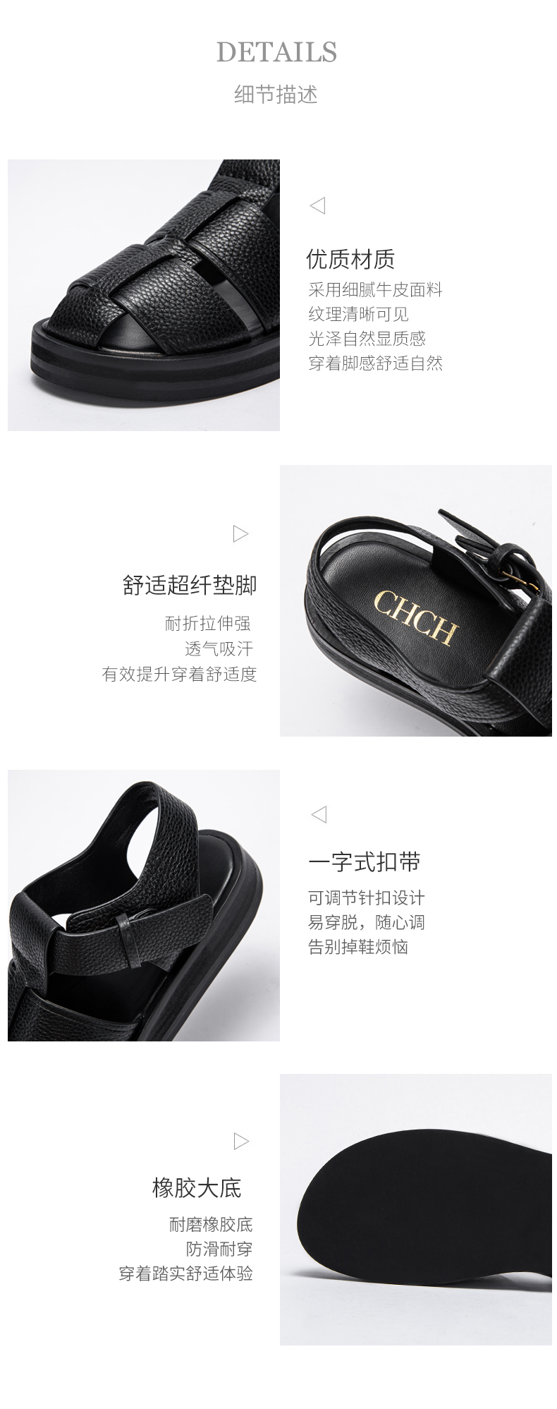CHCH2024夏季女鞋包头真皮平底猪笼鞋复古缕空编织罗马鞋女鞋