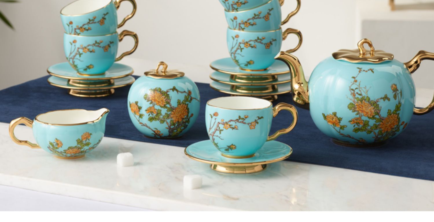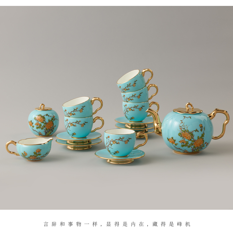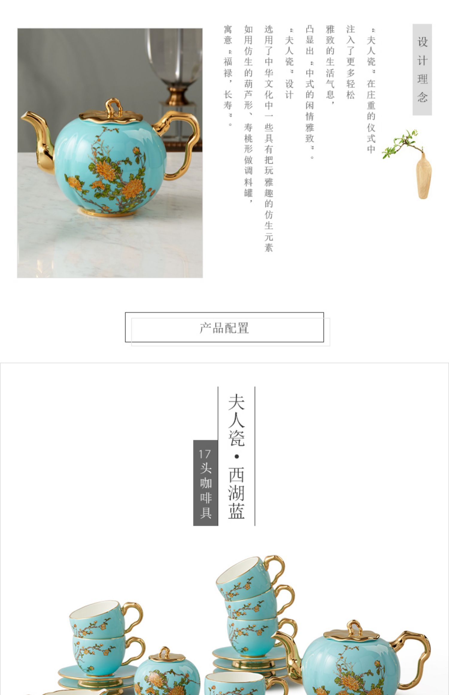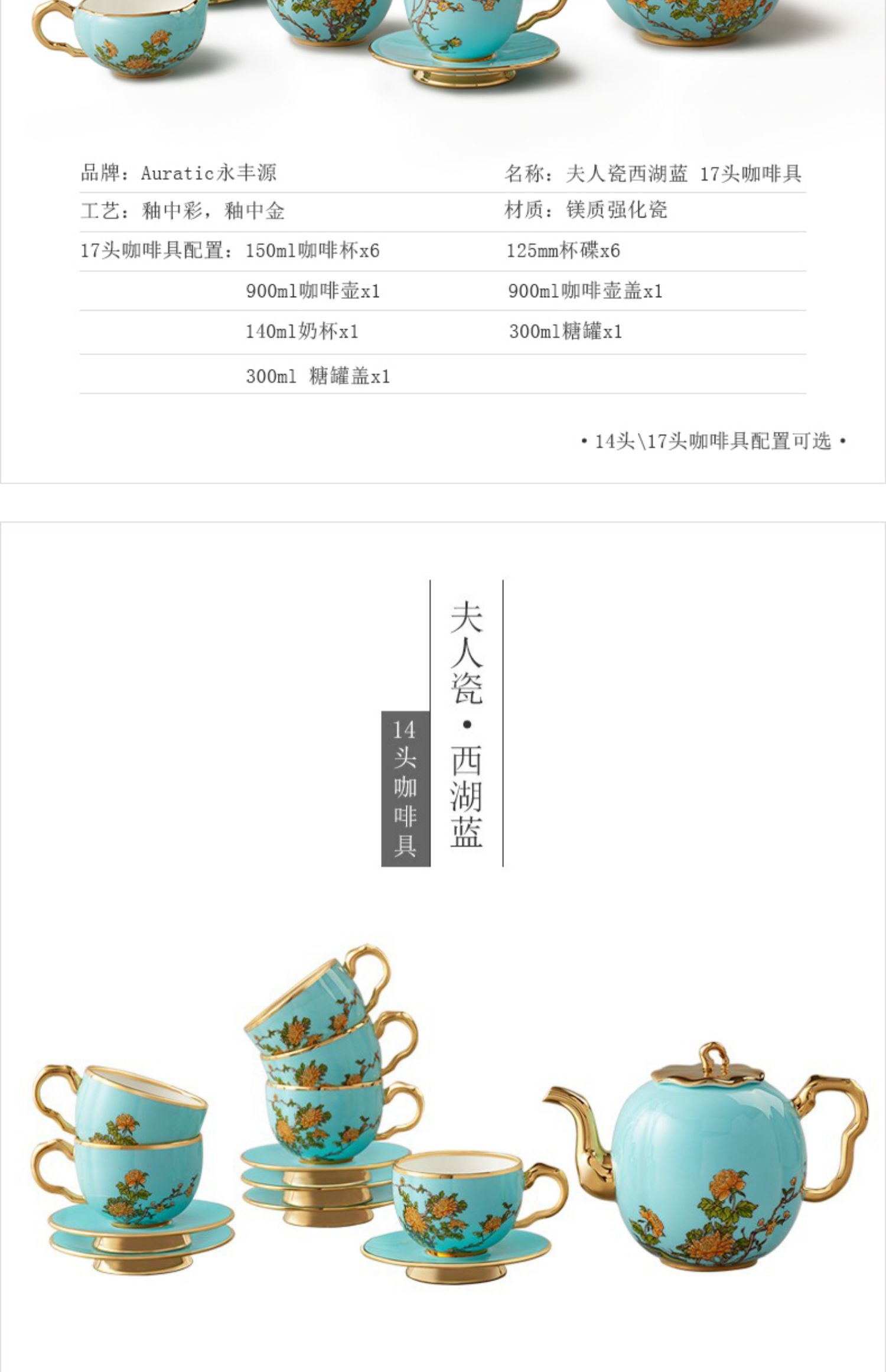 永丰源 夫人瓷西湖蓝17头咖啡具茶具陶瓷家用下午茶具咖啡杯碟礼盒