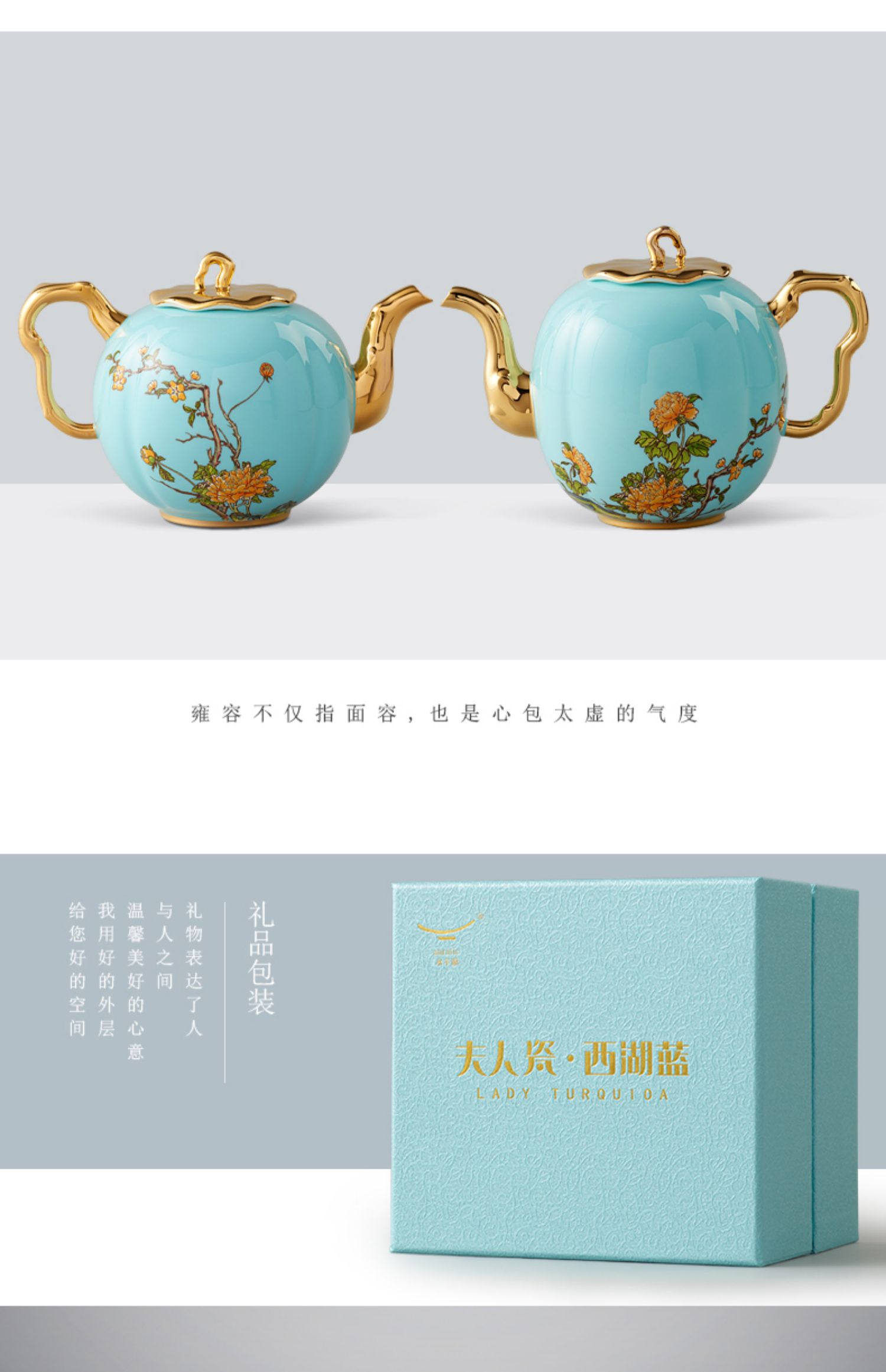 永丰源 西湖蓝 6头/7头茶具陶瓷轻奢三才盖碗功夫茶具客厅家用下午茶