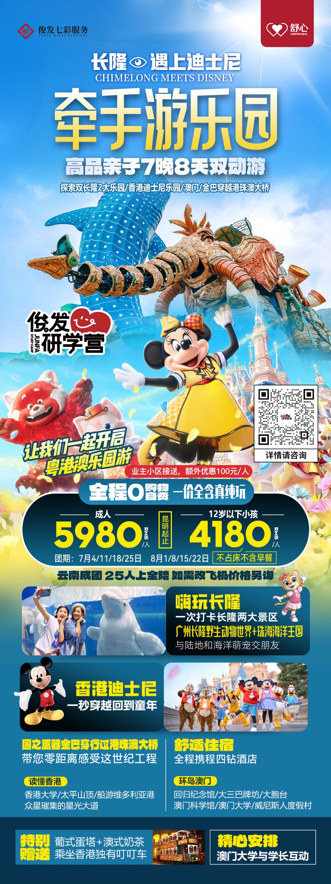 (业主专属优惠)2025年牵手游乐园《长隆遇上迪士尼》粤港澳7晚8天亲子游YX