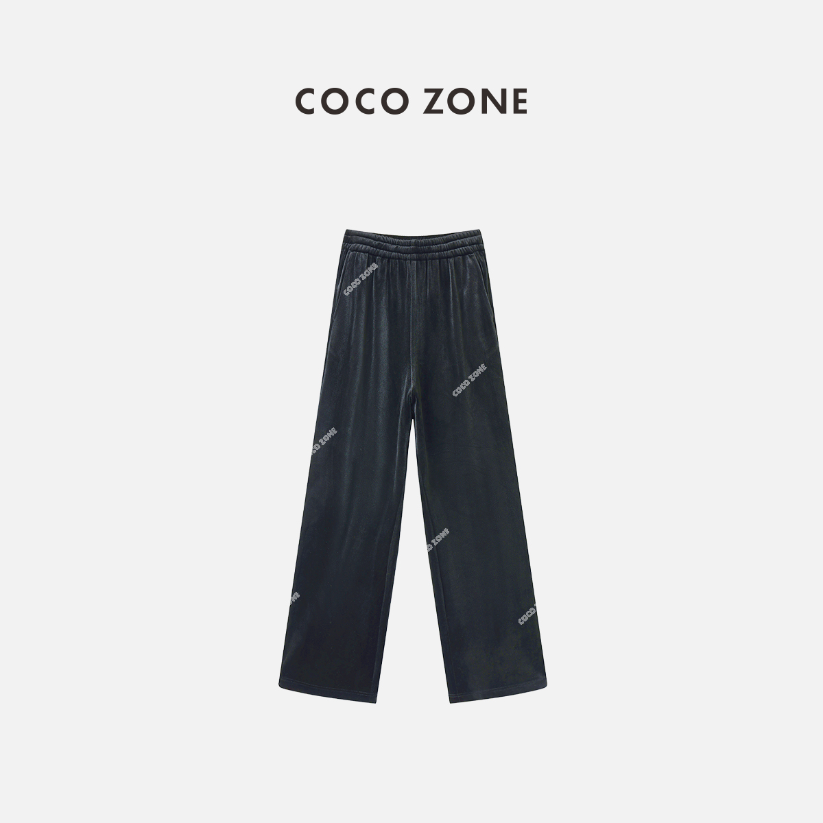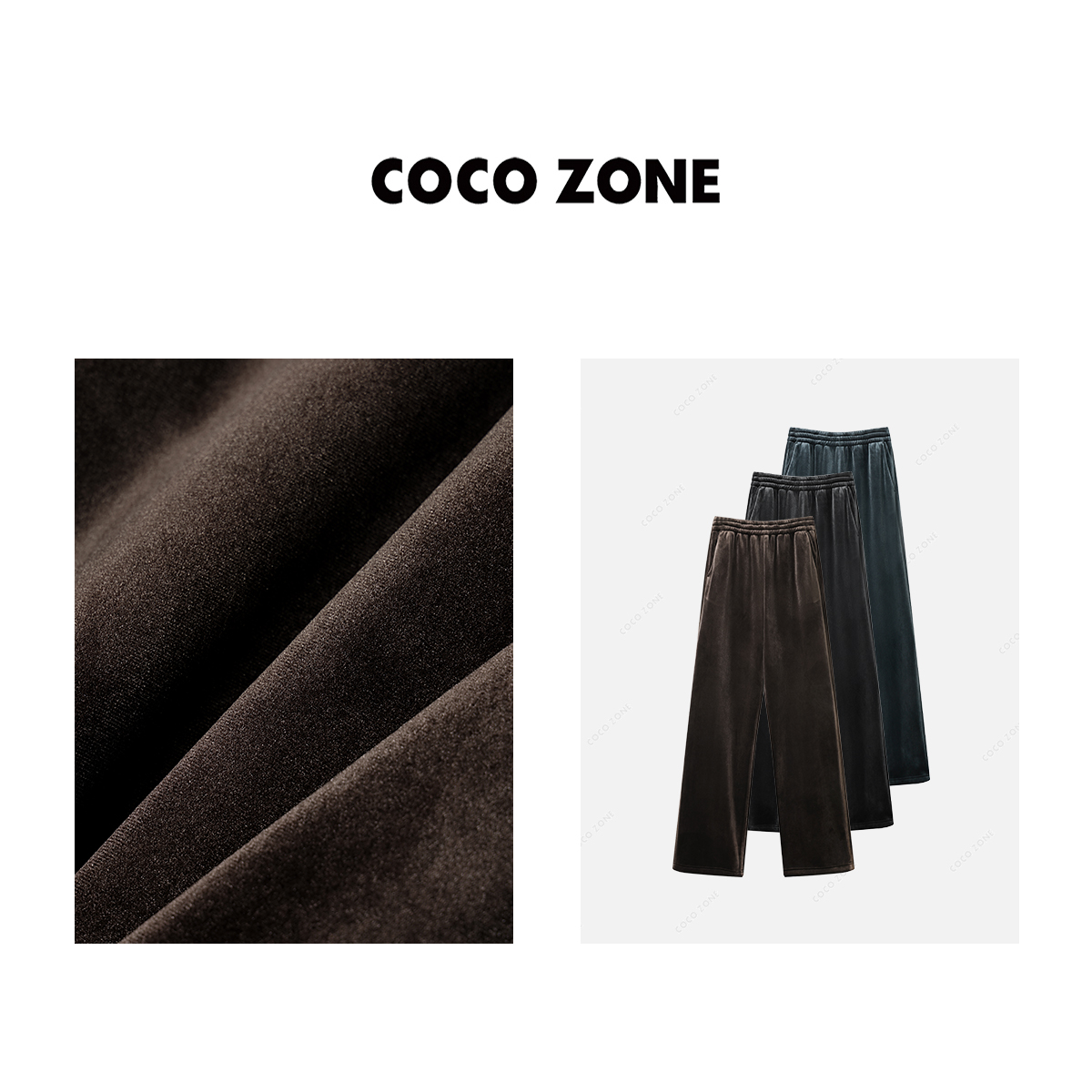COCO ZONE秋冬丝绒款直筒加绒里松紧腰保暖休闲裤23C19858