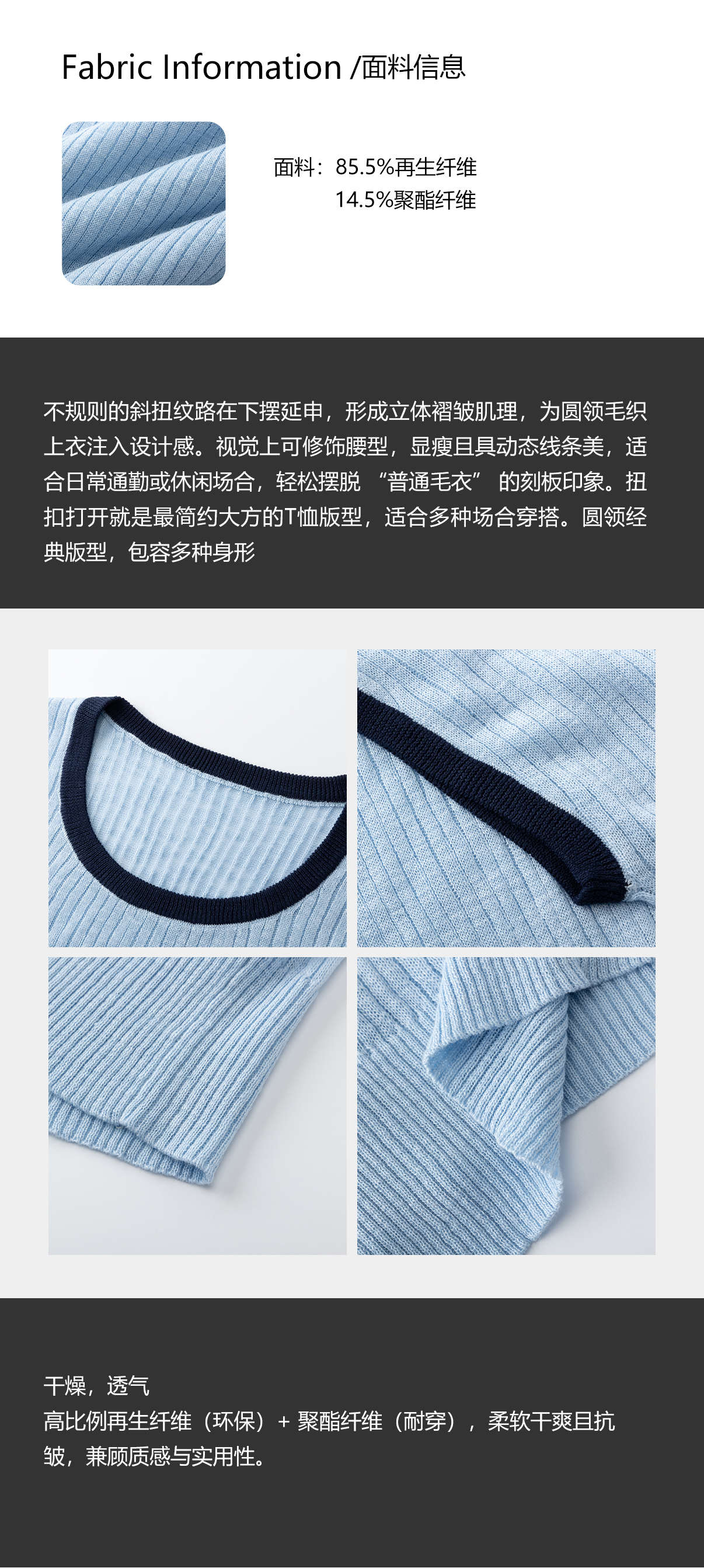 COCO ZONE 刘一一 圆领简约斜扭纹路显瘦毛织上衣CD1A0971