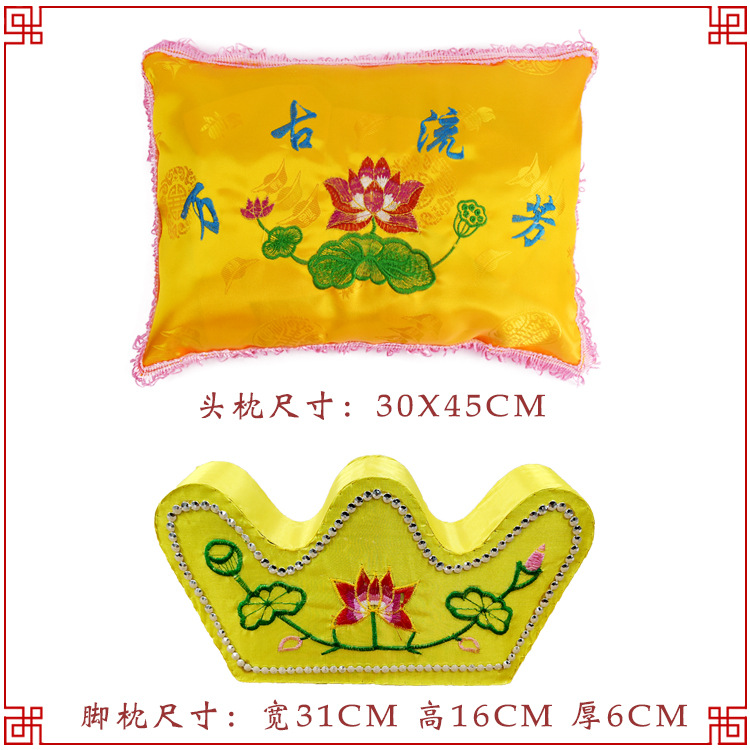 黄色万古流芳 寿枕方枕元宝枕头男女寿衣配件殡葬用品脚枕