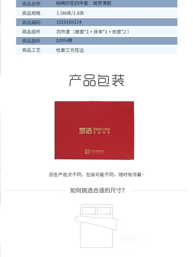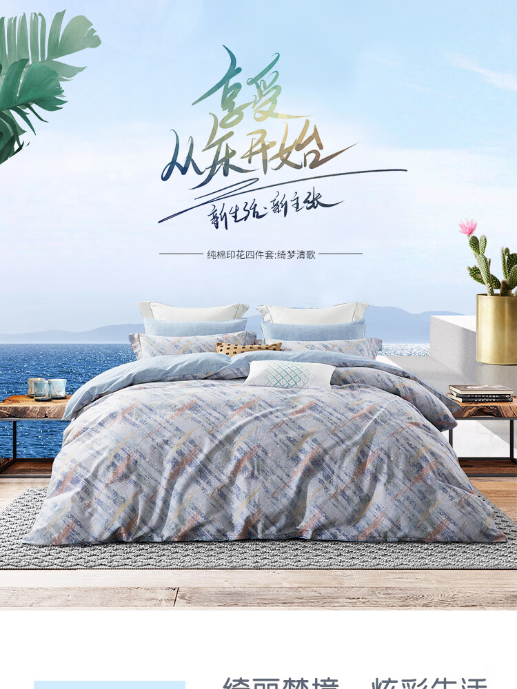 梦洁家纺 纯棉印花四件套-绮梦清歌
