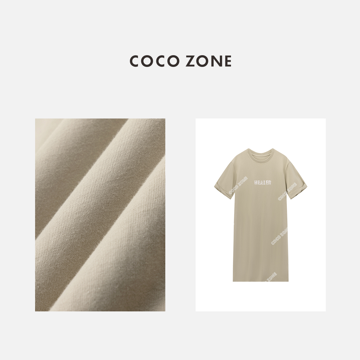 COCO ZONE"懒人裙“夏季字母印花连衣裙时尚圆领短袖长裙CC2B0768