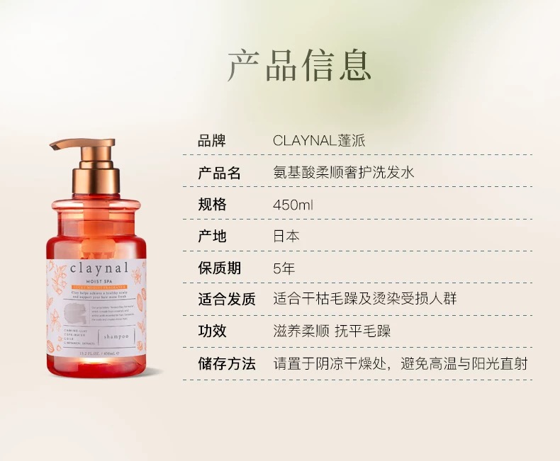claynal蓬派氨基酸沙发柔顺滋养洗发水护发素改善毛躁