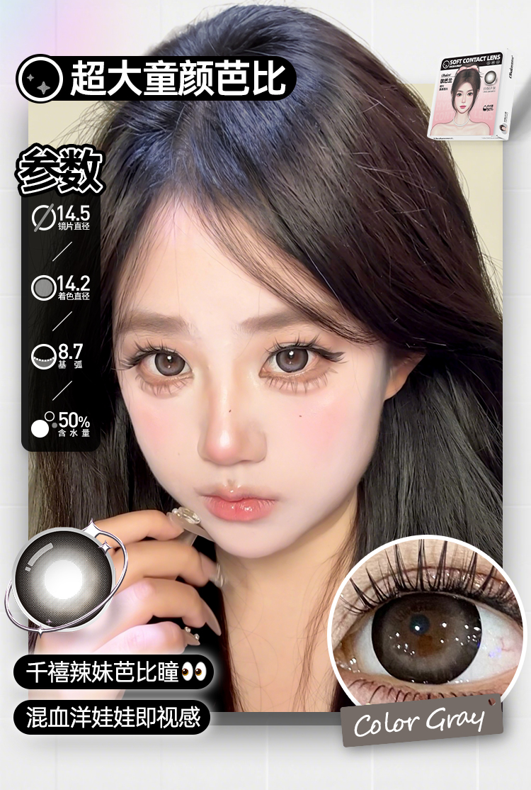 新款【超大童颜芭比】14.5大直径日抛美瞳6片装