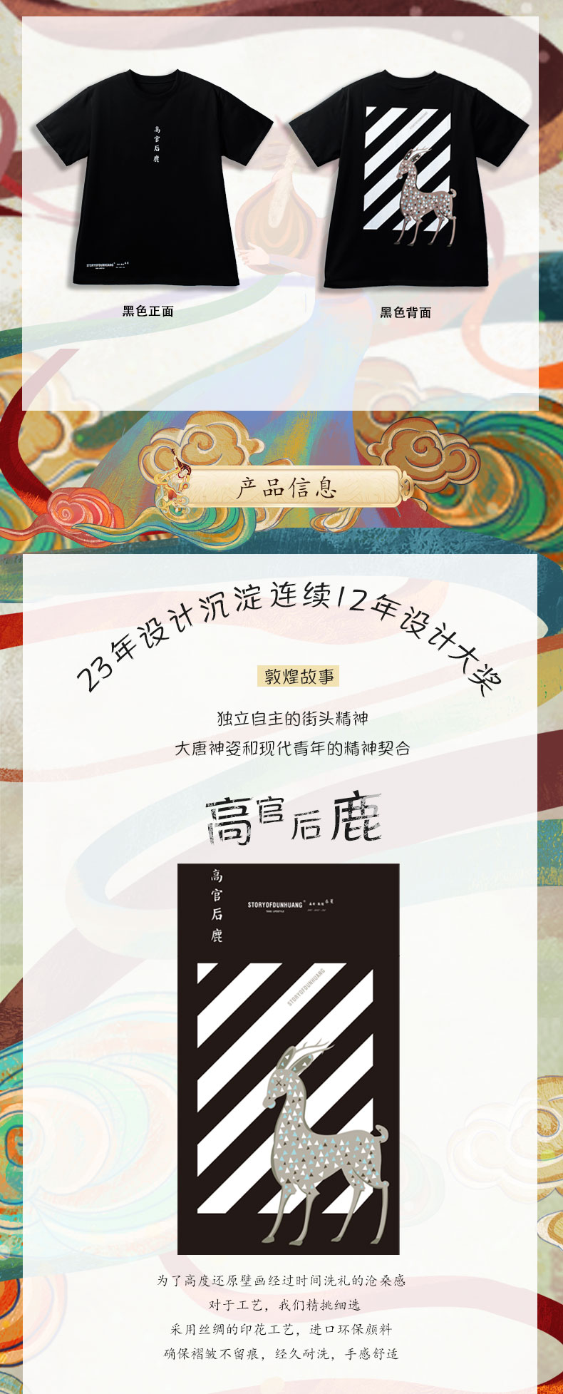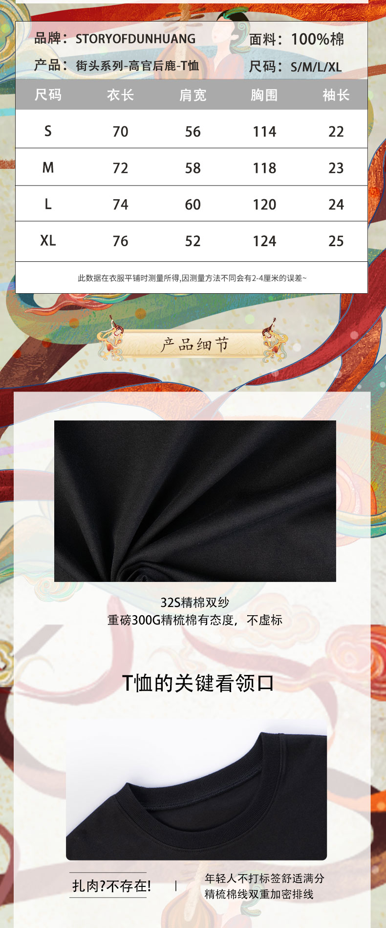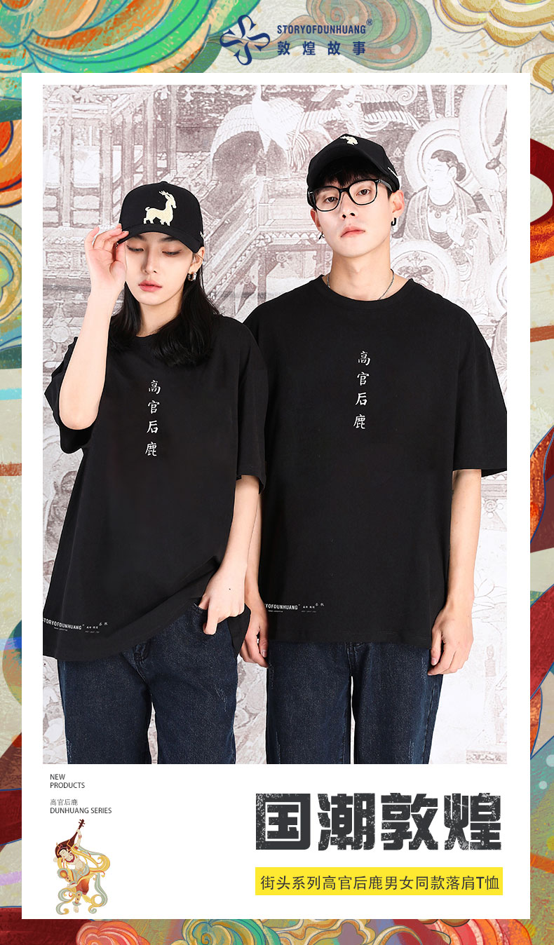 敦煌故事高官后鹿短袖t恤宽松版新棉时尚百搭夏青年