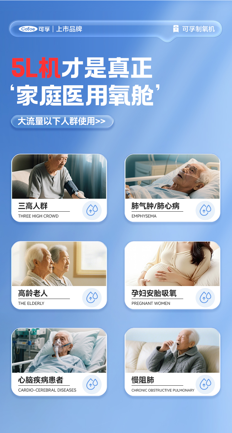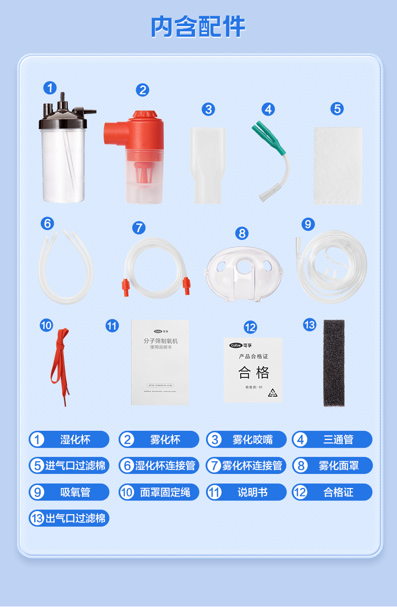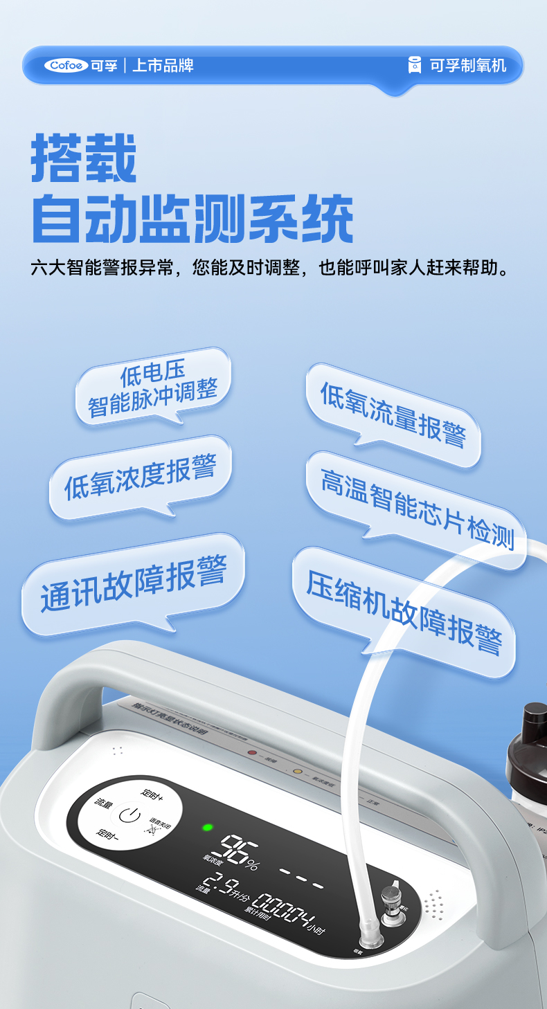 可孚医用制氧机家用老人轻音5L6L升吸氧机氧气孕妇专用雾化家庭