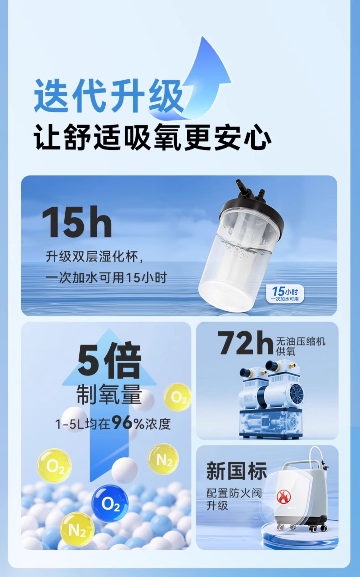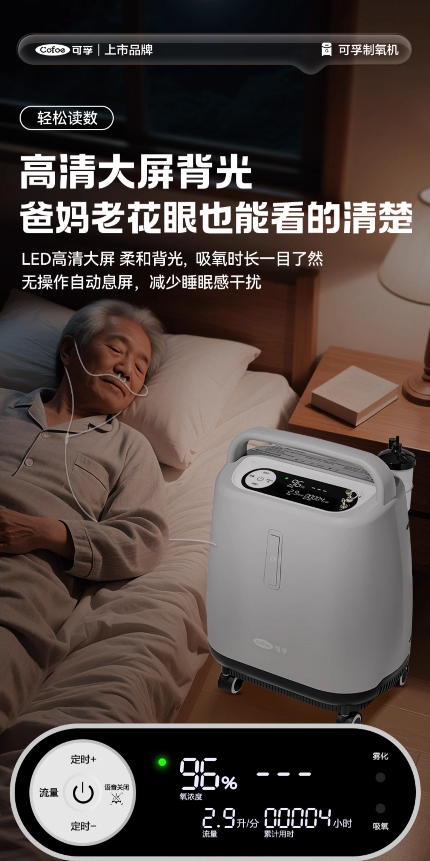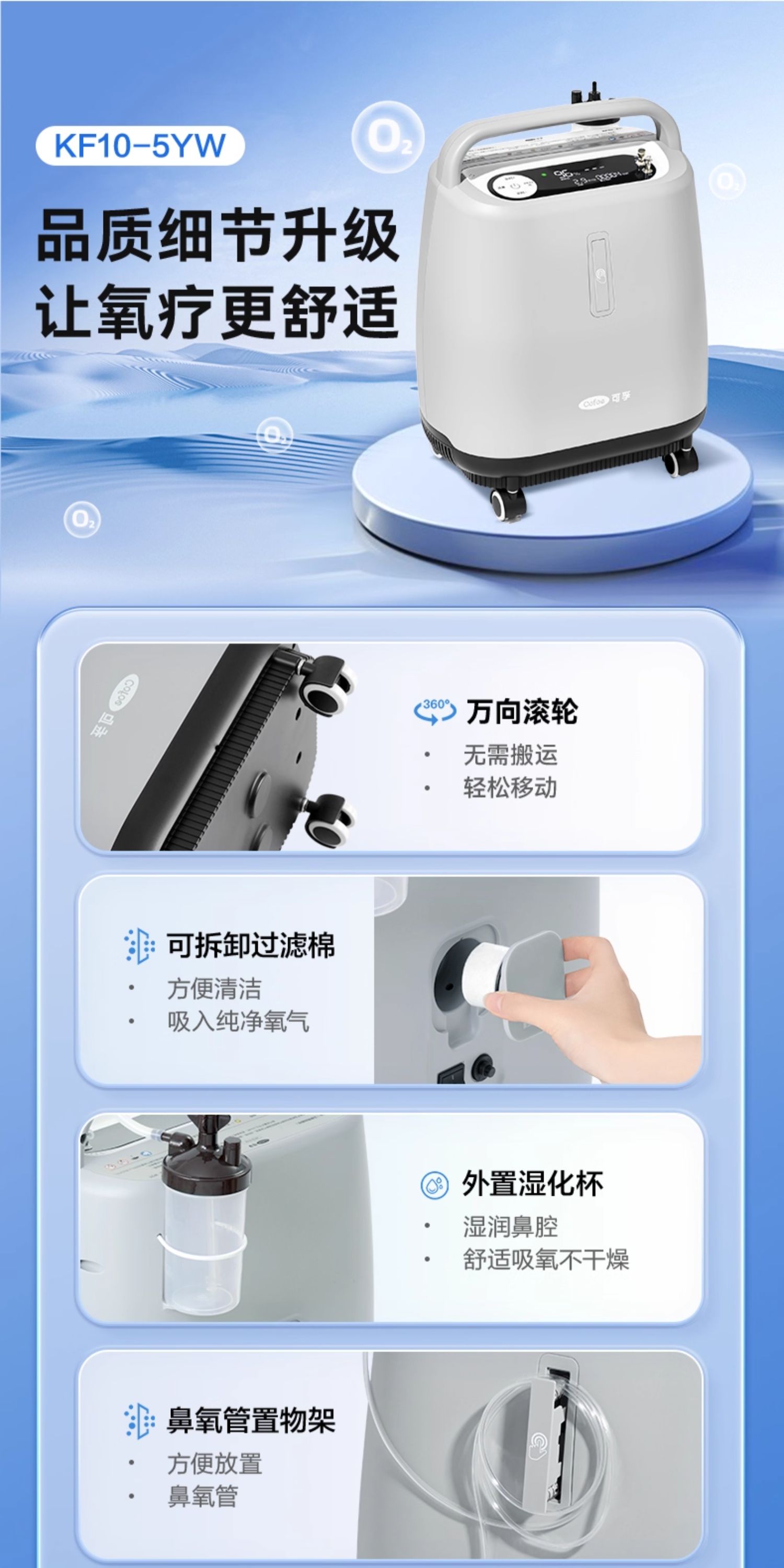 可孚医用制氧机家用老人轻音5L6L升吸氧机氧气孕妇专用雾化家庭
