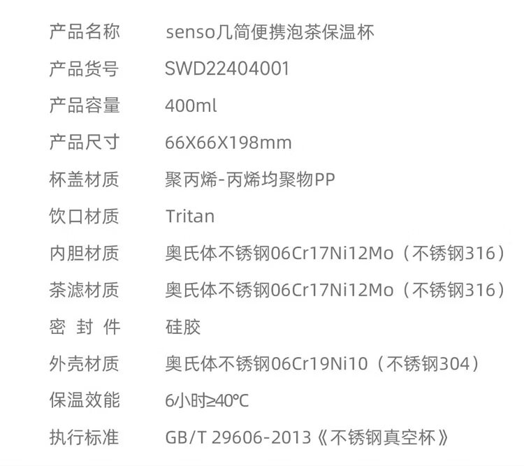 SENSO几简便携泡茶保温杯 400ml 黑色