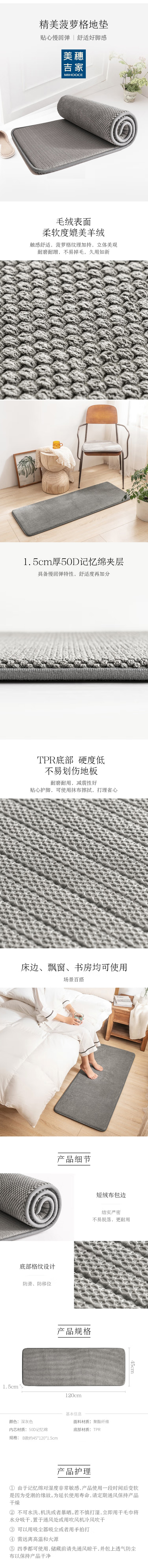 美穗吉家 记忆绵慢回弹菠萝格地垫 灰色 45X120cm