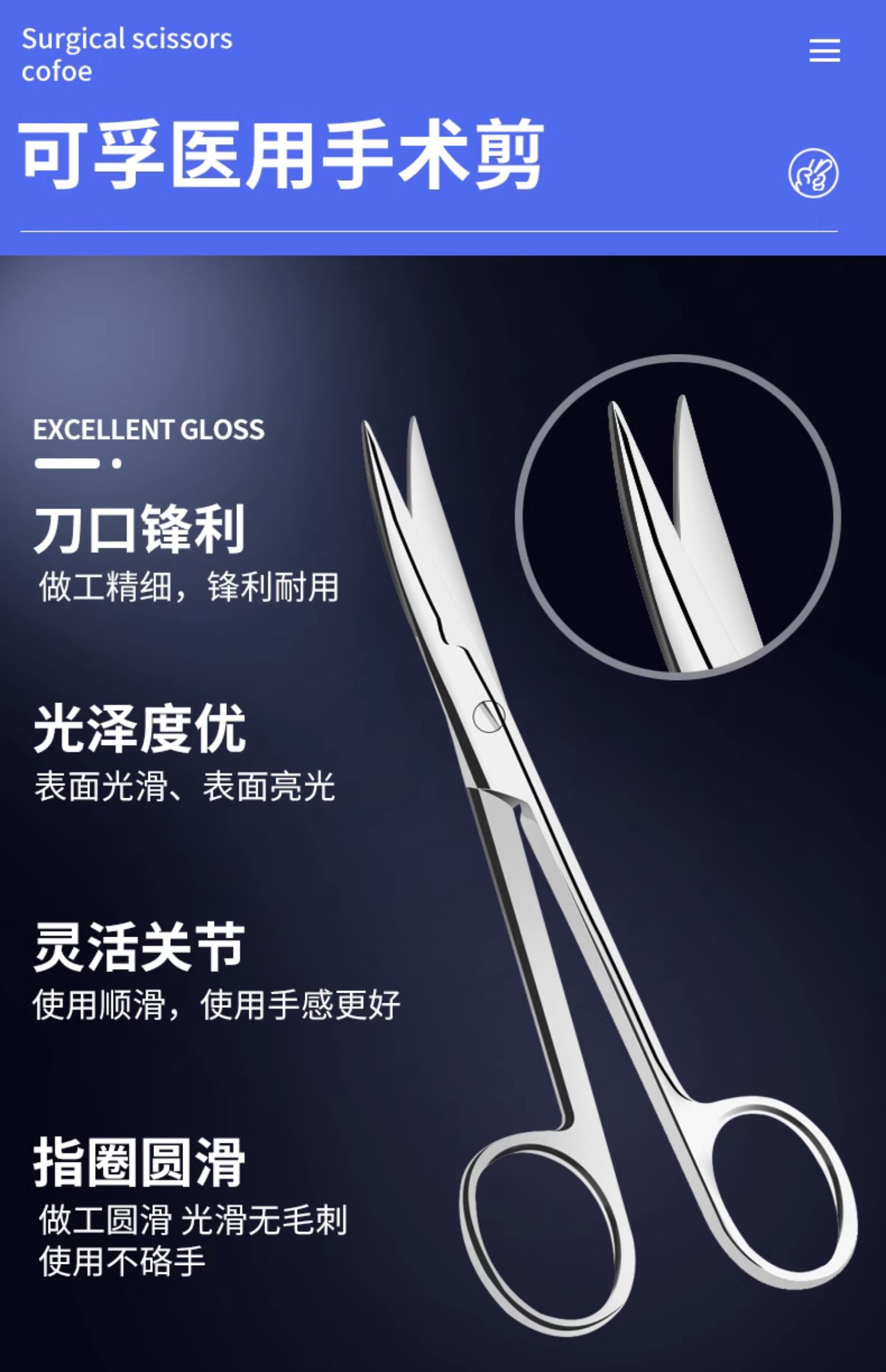 【造口底盘专用弯剪】可孚手术剪刀夹子家用拆线
