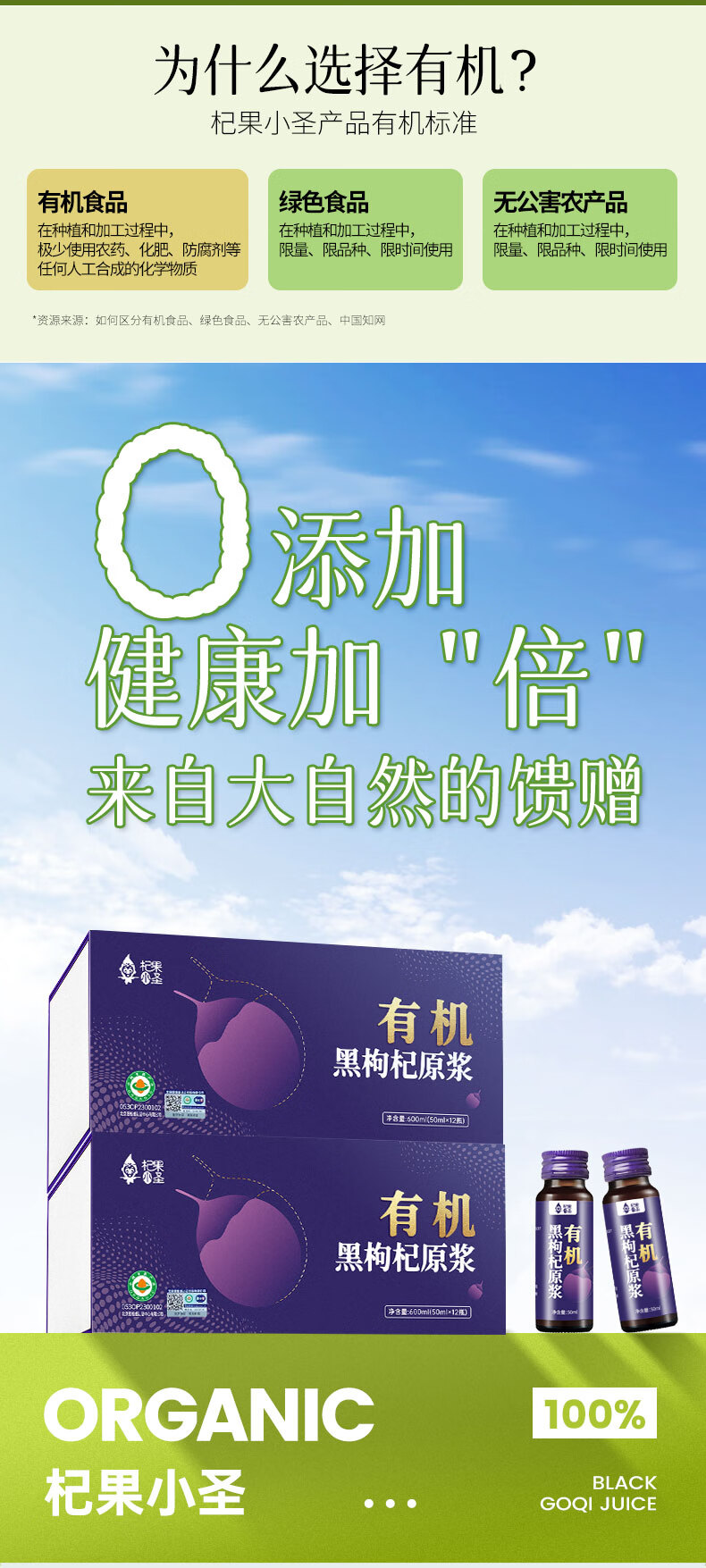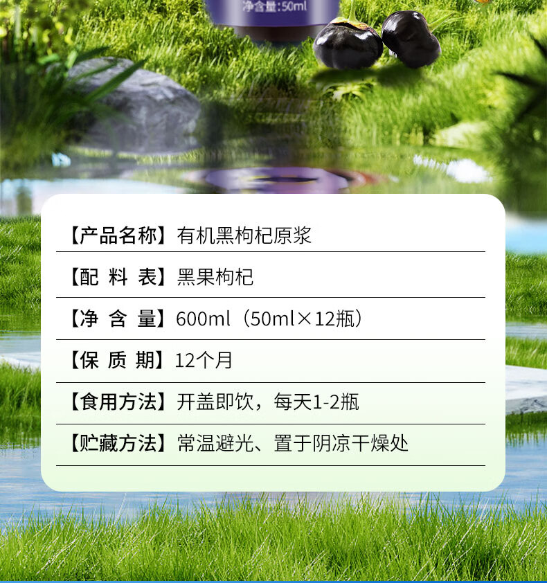 杞果小圣有机黑枸杞鲜浆精品礼盒600ML(50ML*12瓶)