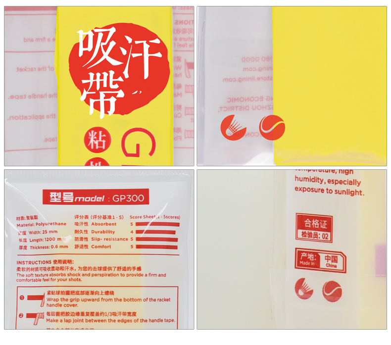 李宁球拍手胶防滑粘性柄皮吸汗耐磨防滑吸汗带GP300
