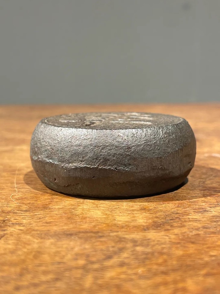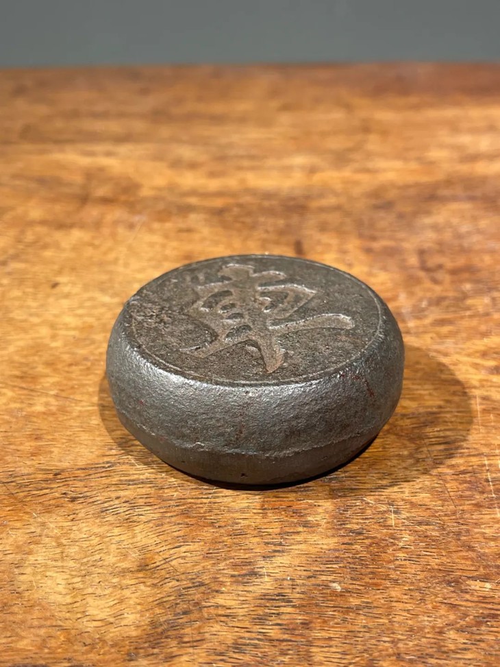 此老铸铁象棋形镇纸质地厚重,是一实用优美的书房或是茶席镇纸,除边沿小磕伤,底部原铸造缺陷孔与正常使用磨损痕迹外,无其它损伤。