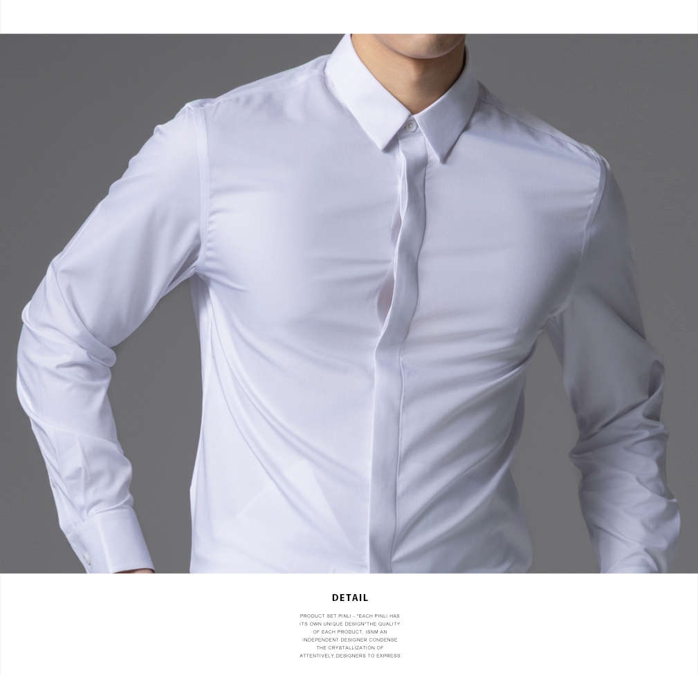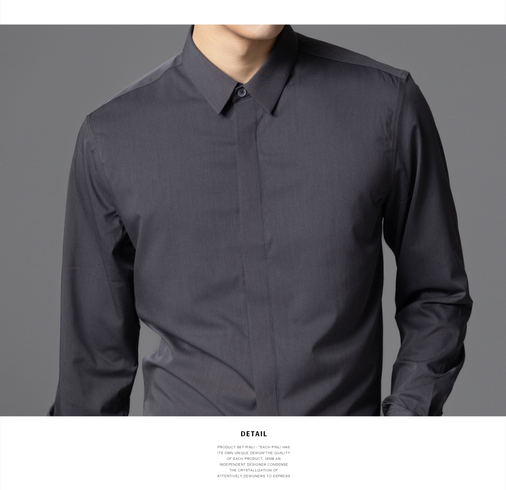 PINLI品立2025秋季新款男士商务休闲长袖衬衫纯色百搭翻领衬衣潮GD253113050