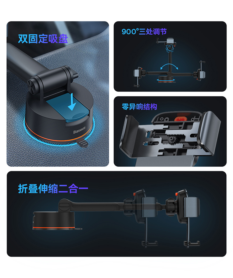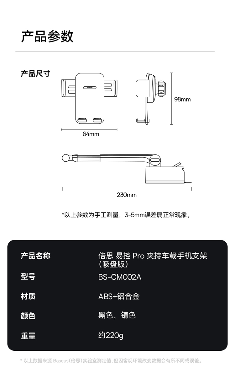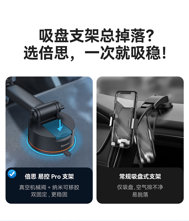 倍思 易控Pro夹持车载手机支架(吸盘版)
