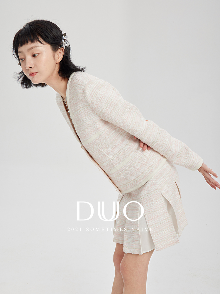 DUO智仙生 黑标 煎盐叠雪 白色粗花呢外套和背带连衣裙