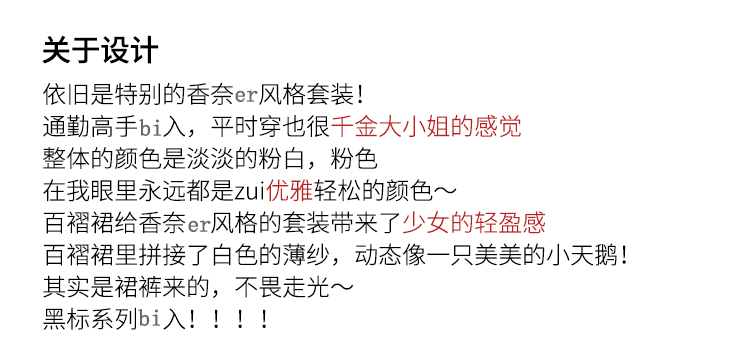黑标樱花粉梨花白香nai儿风格百褶裙套装