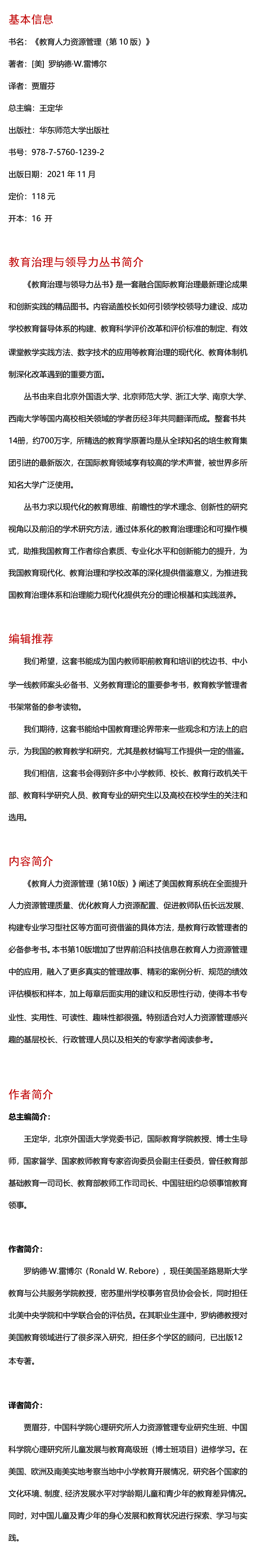 教育人力资源管理第10版 教育治理与领导力丛书 罗纳德·W.雷博尔 教育教学管理培训 教师人才队伍建设 正版 华东师范大学出版社