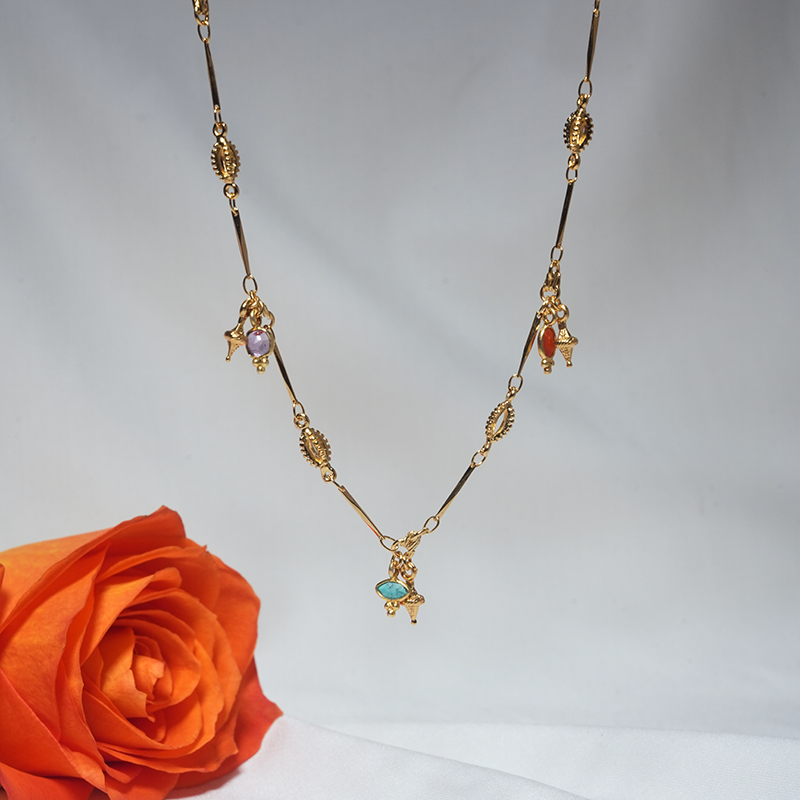 北京仓|DELPHES-紫水晶 松石 红色 项链[法国设计师]