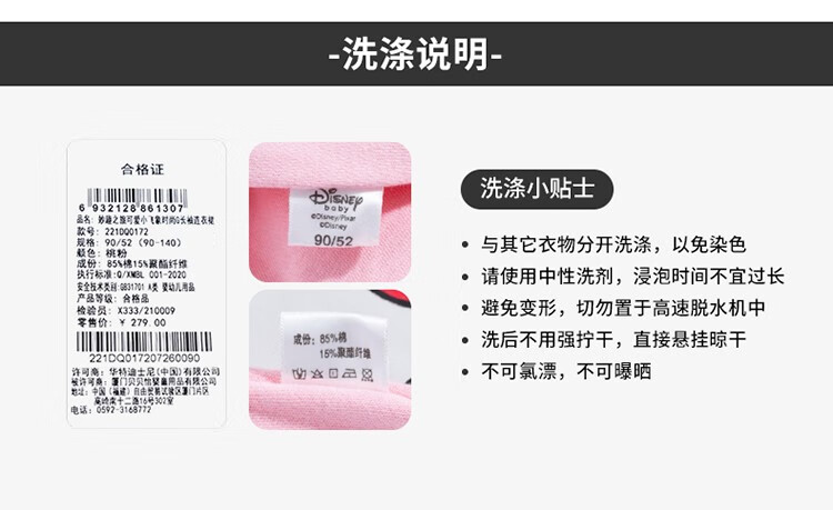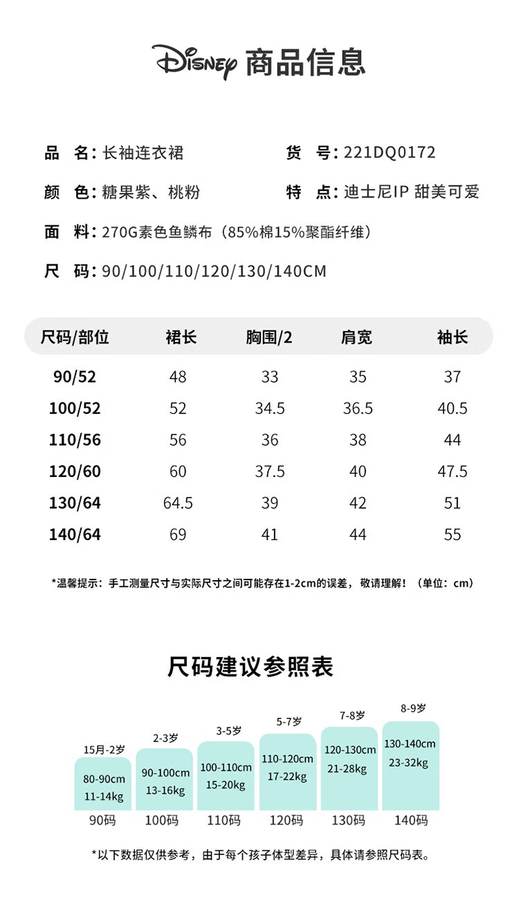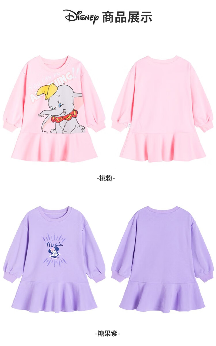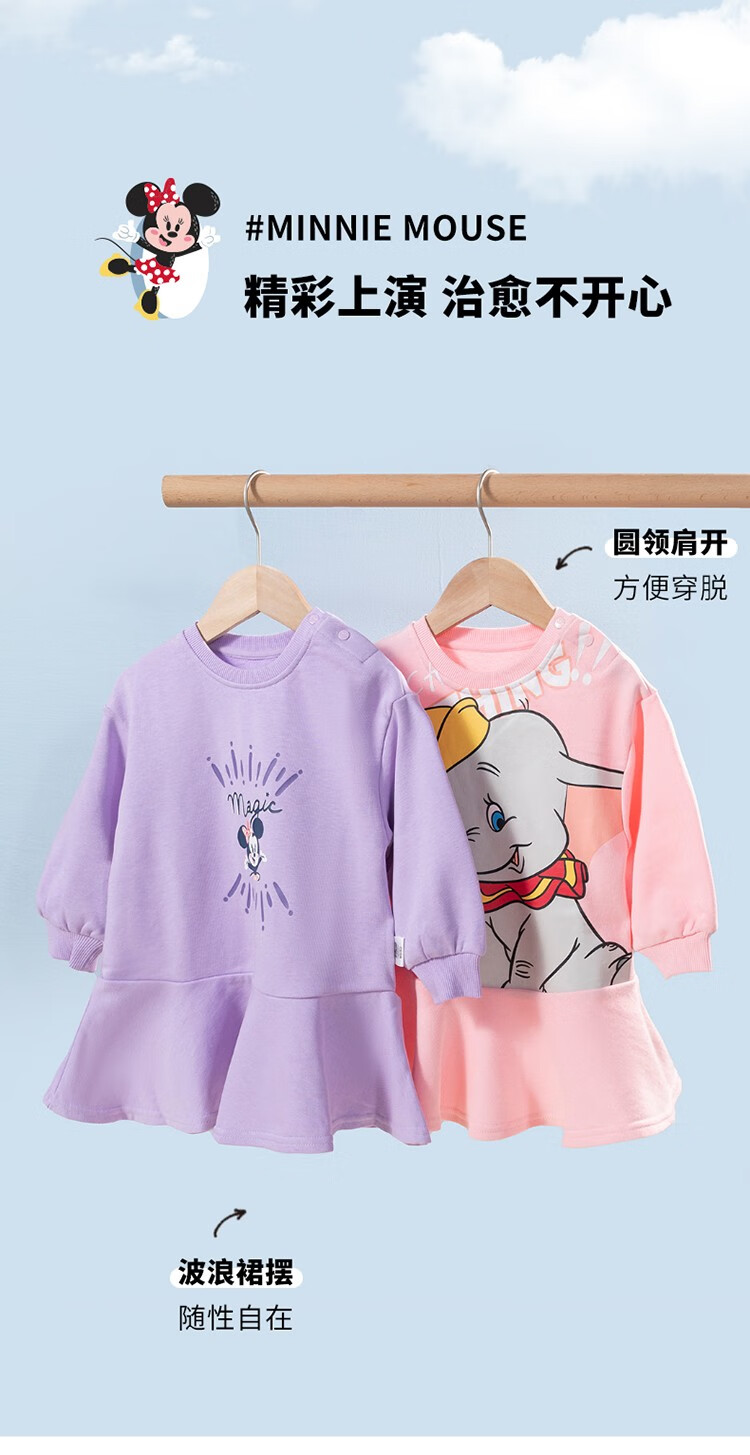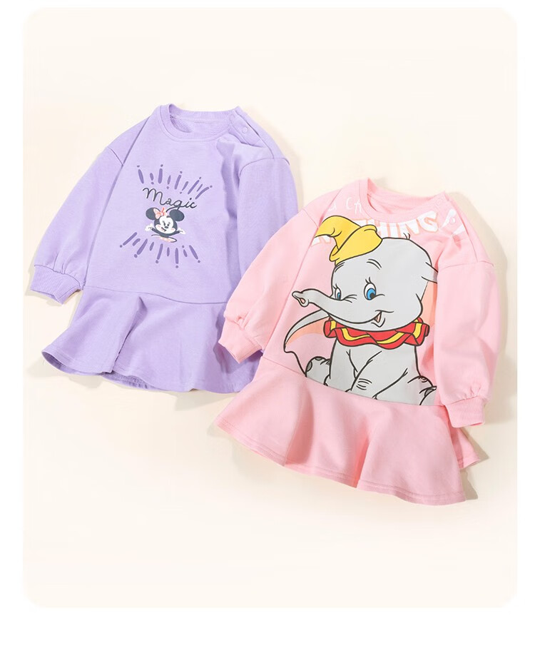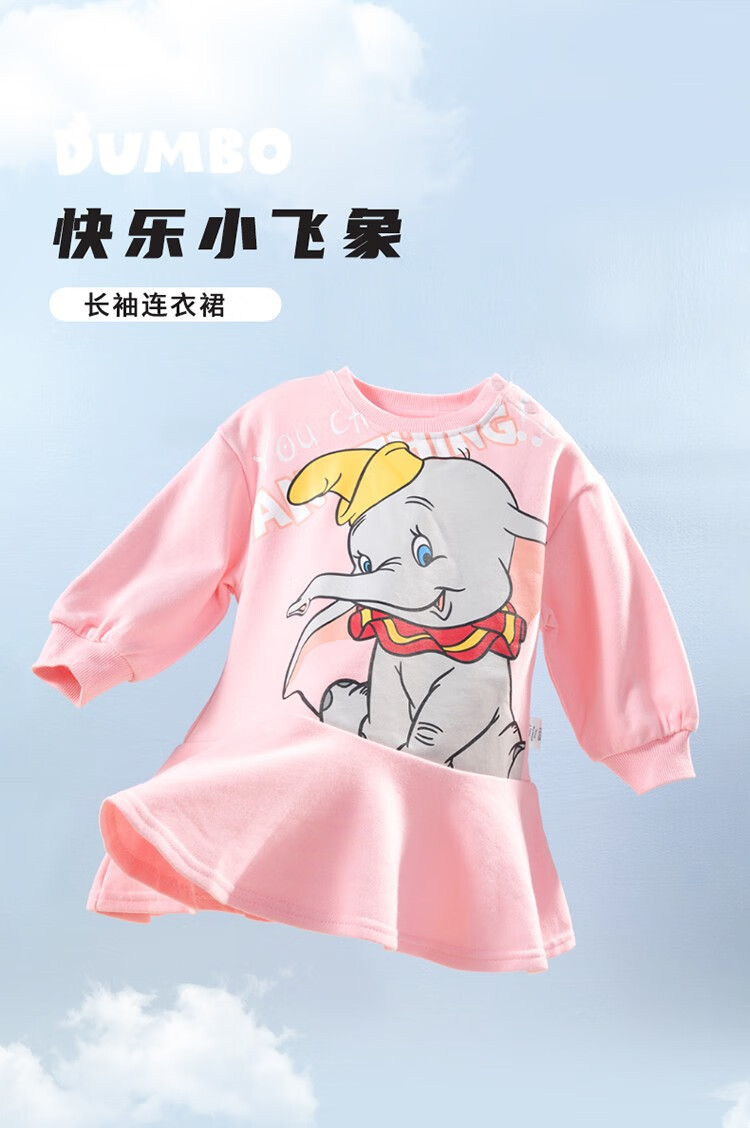 【商场同款】迪士尼童装女童连衣学院风裙春秋款小飞象米妮卡通可爱中大童裙子