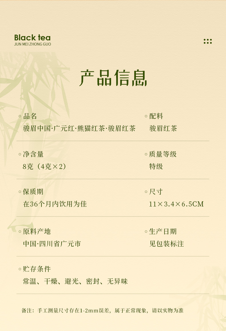 正山堂广元红 熊猫红茶 骏眉中国四川特级红茶正宗茶叶品鉴装8g