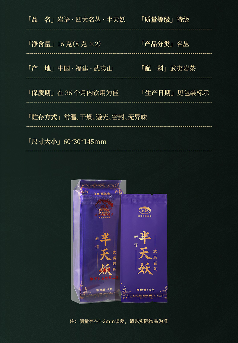 岩语 半天妖 武夷岩茶四大名丛特级乌龙茶试饮装茶叶品鉴装16g